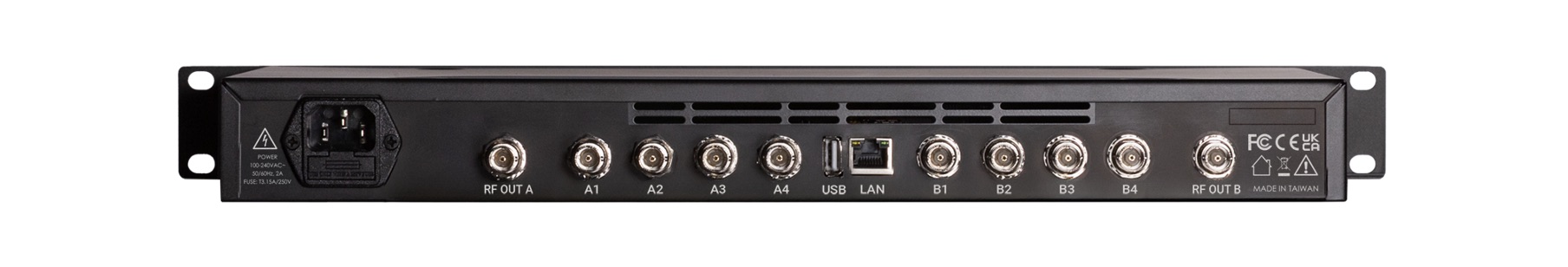Photo caption 3: The rear panel of the RF Venue 4 ZONE-Network adds an ethernet port which allows access to its built-in browser-based control