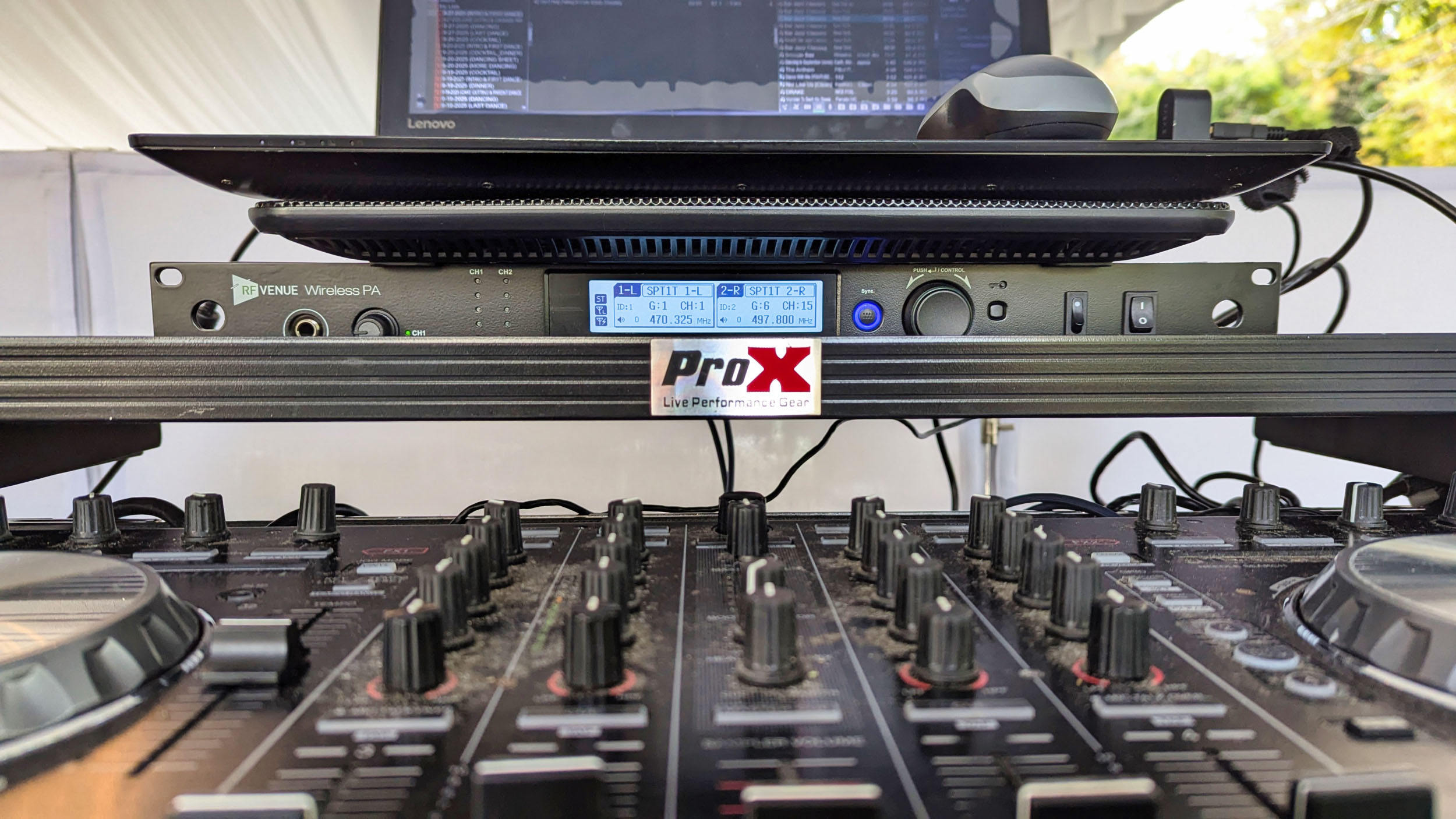 Photo caption 1: RF Venue’s RF PA Extension Kit transmitter incorporated into a DJ Ra-Mu and the Crew wedding setup