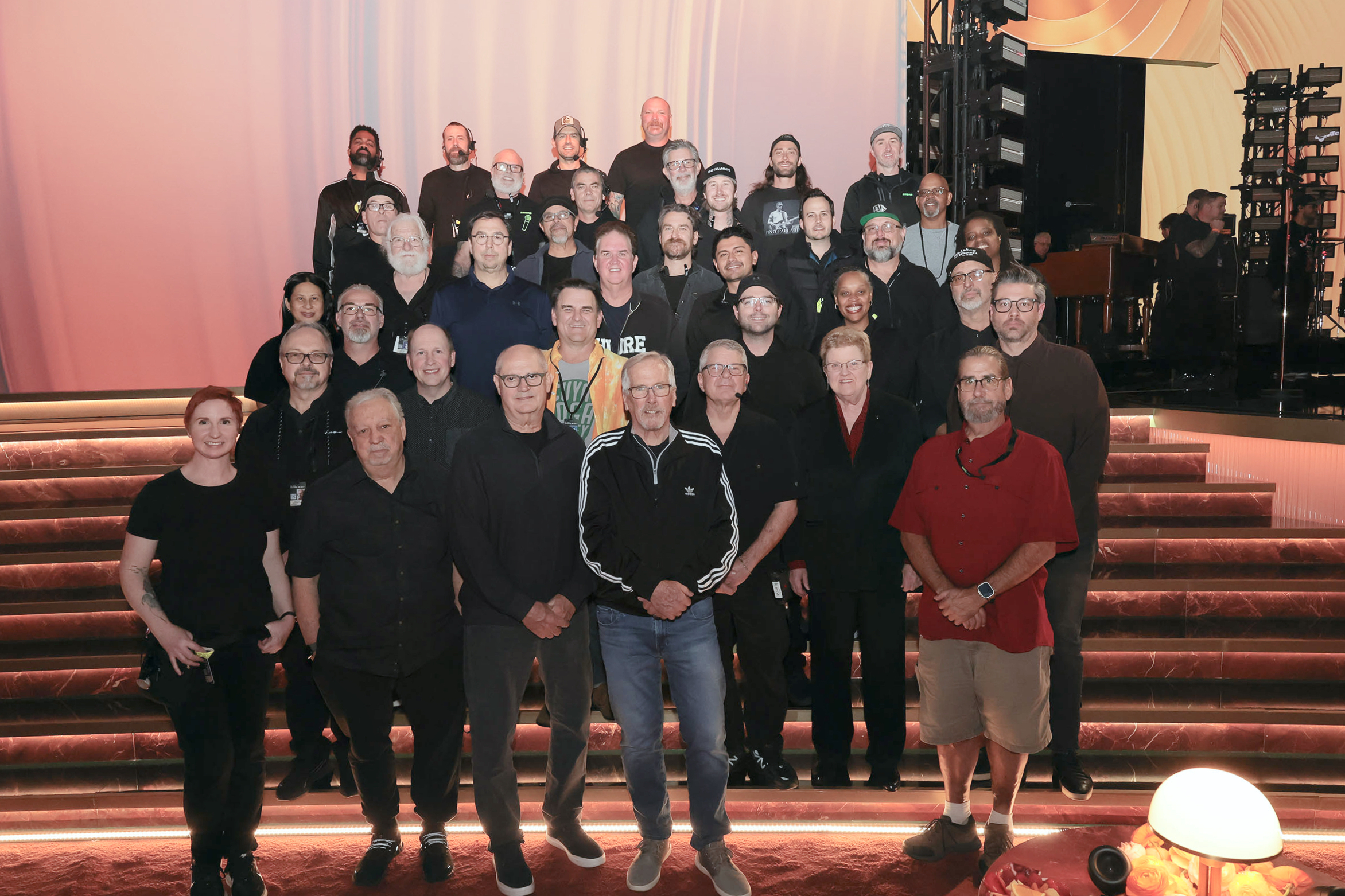 Santa Monica, Calif. (Feb. 2, 2026) — Just moments before the 2026 Grammy Awards® kicked off, members of the event's audio team assembled for a group photo at the base of the stage inside Los Angeles’ Crypto.com Arena. Taking place on Sunday, February 1, the 2026 Grammy Awards delivered a remarkable lineup of performances and tributes, while leveraging state-of-the-art technology to bring audiences around the globe a high-definition audio experience.