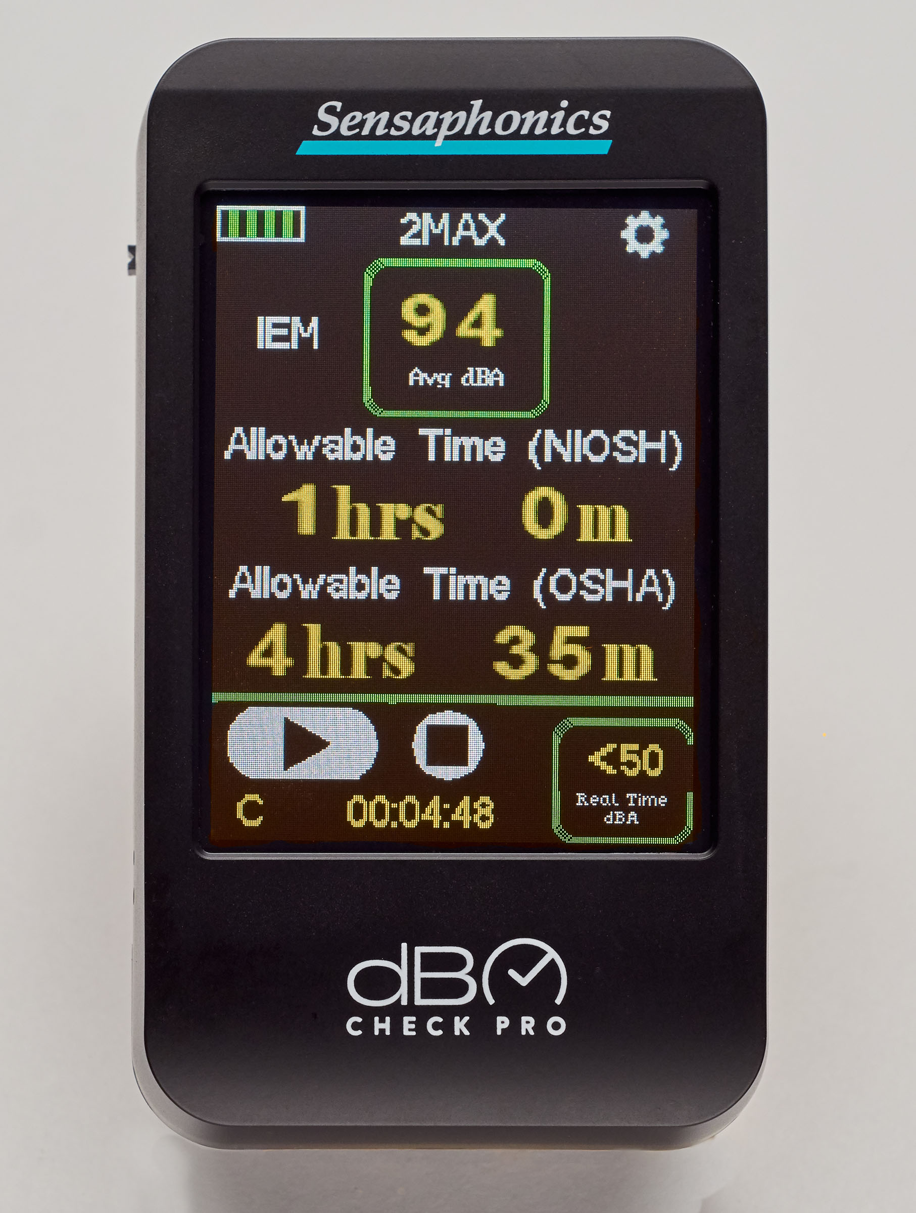 dB Check Pro, developed by custom-fit in-ear monitors, earplugs and pro audio electronics manufacturer Sensaphonics, is the only device on the market that provides IEM and headphone end users with calculated at-ear real-time and average sound pressure level estimates (dBA SPL) of both monitoring level and measured stage/environmental noise. The unit also calculates safe listening durations based on NIOSH and OSHA guidelines, empowering users to make informed decisions about their listening habits.