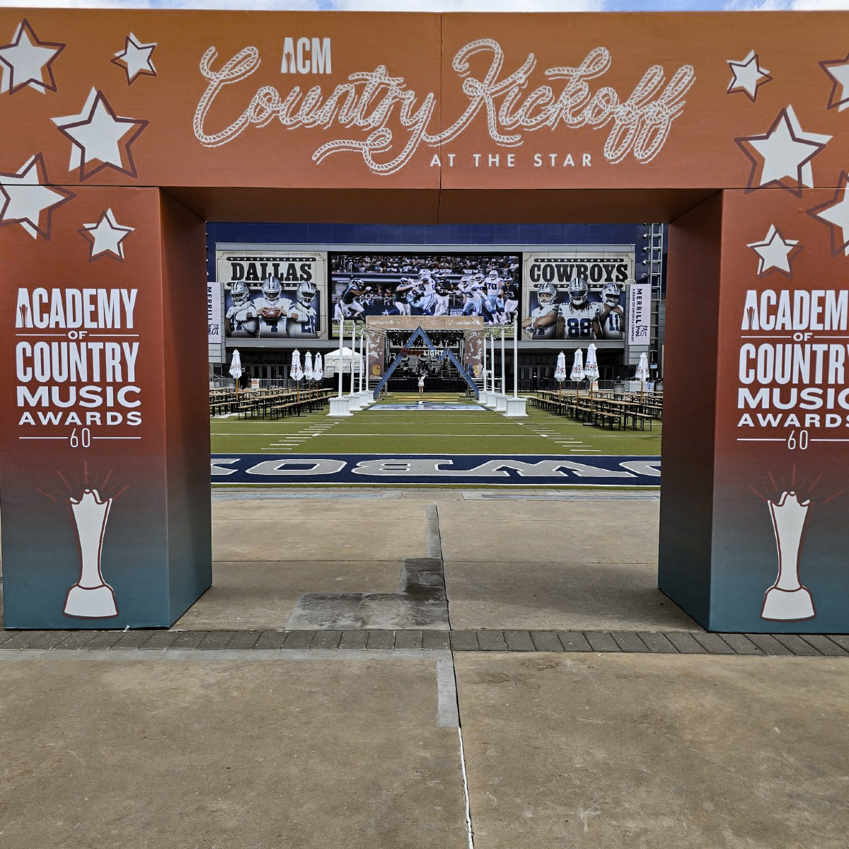Photo 2 caption: Entrance to the outdoor Plaza Stage area at The Star in Frisco, Texas, for the ACM “Country Kickoff at The Star” event. Photo credit: Jesse Hankins, Little Red Barn Productions.