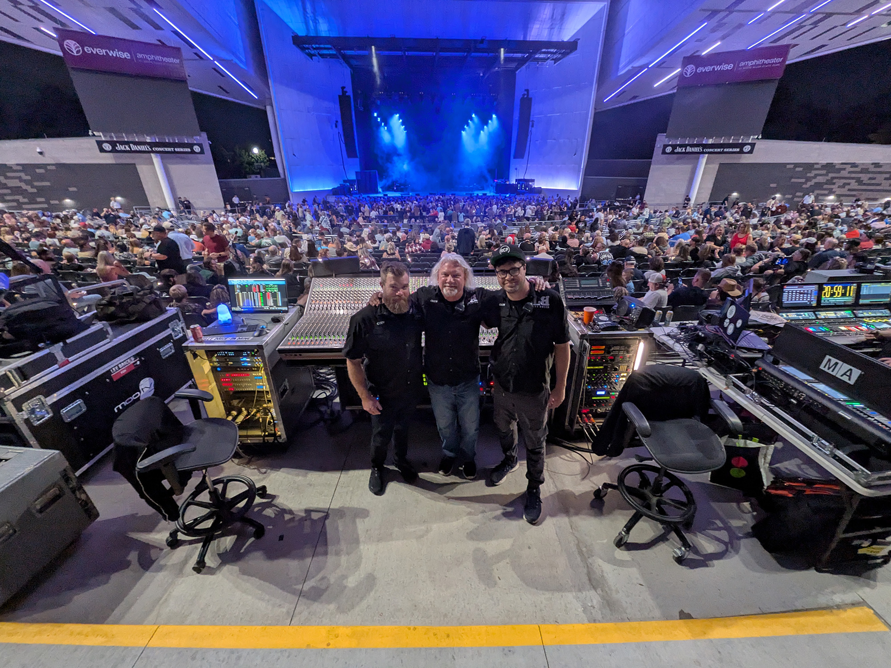 Photo Caption 2: Pictured L-R: Jacob Sealey, PA Tech; Wayne Pauley, FOH Engineer; and Michael Lawrence, RCF Systems Engineer. Photo credit: Michael Lawrence.