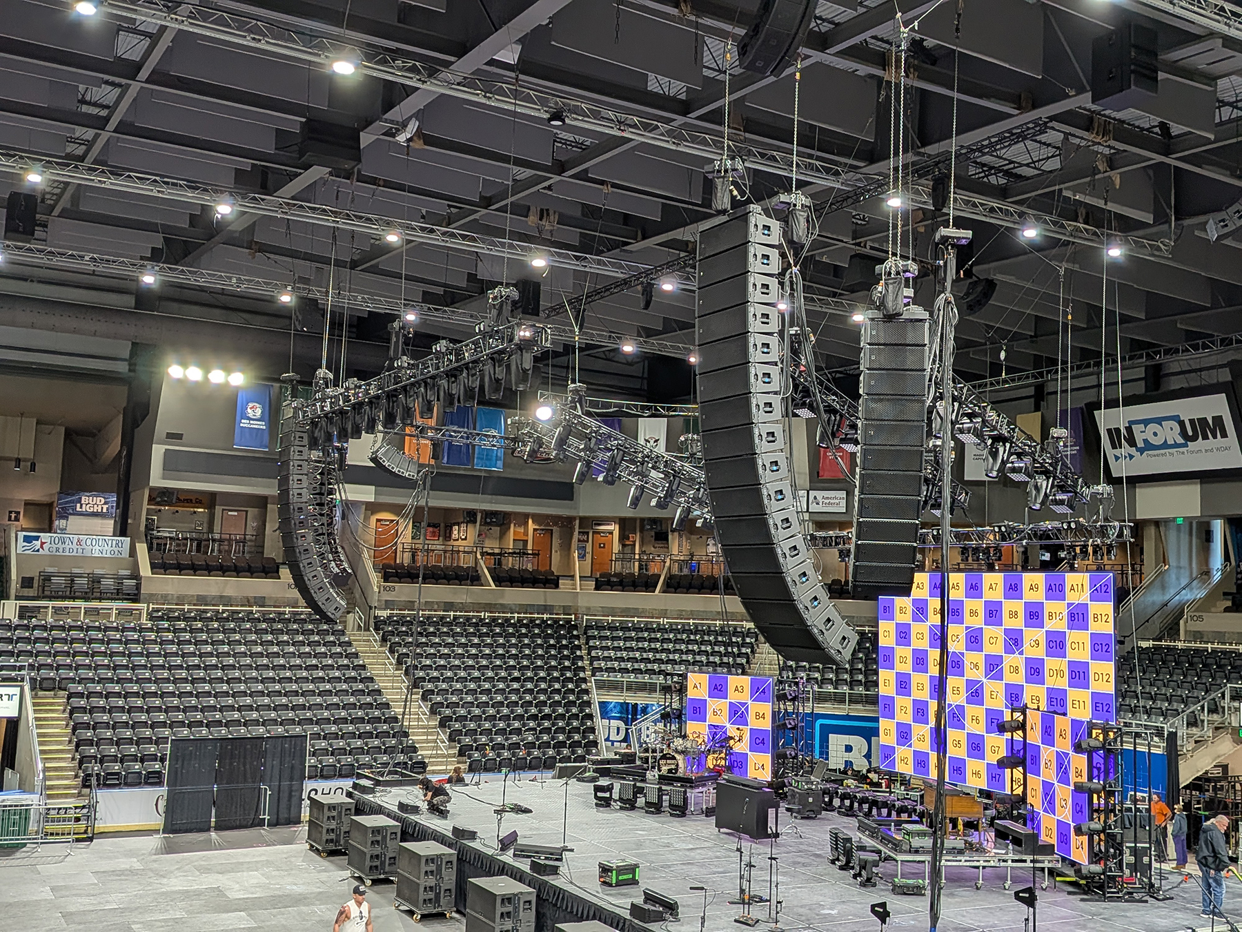 Photo Caption 4: The newly expanded TT+ AUDIO GTX system for Lee Brice’s full-band tour, being set up at the Fargodome in Fargo, ND. Photo credit: Michael Lawrence.
