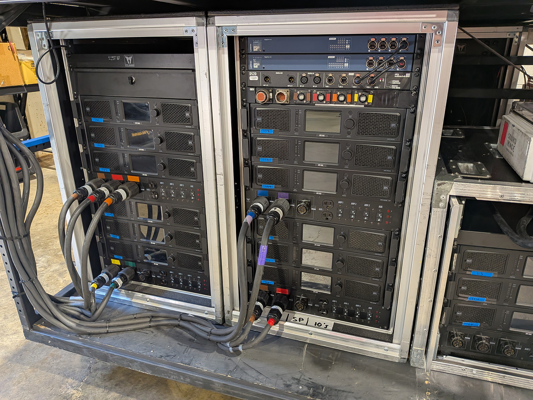 Photo Caption 5: Gear racks of RCF XPS 16K DSP amplifiers powering the newly expanded TT+ AUDIO GTX system for Lee Brice’s full-band tour. Photo credit: Michael Lawrence. |