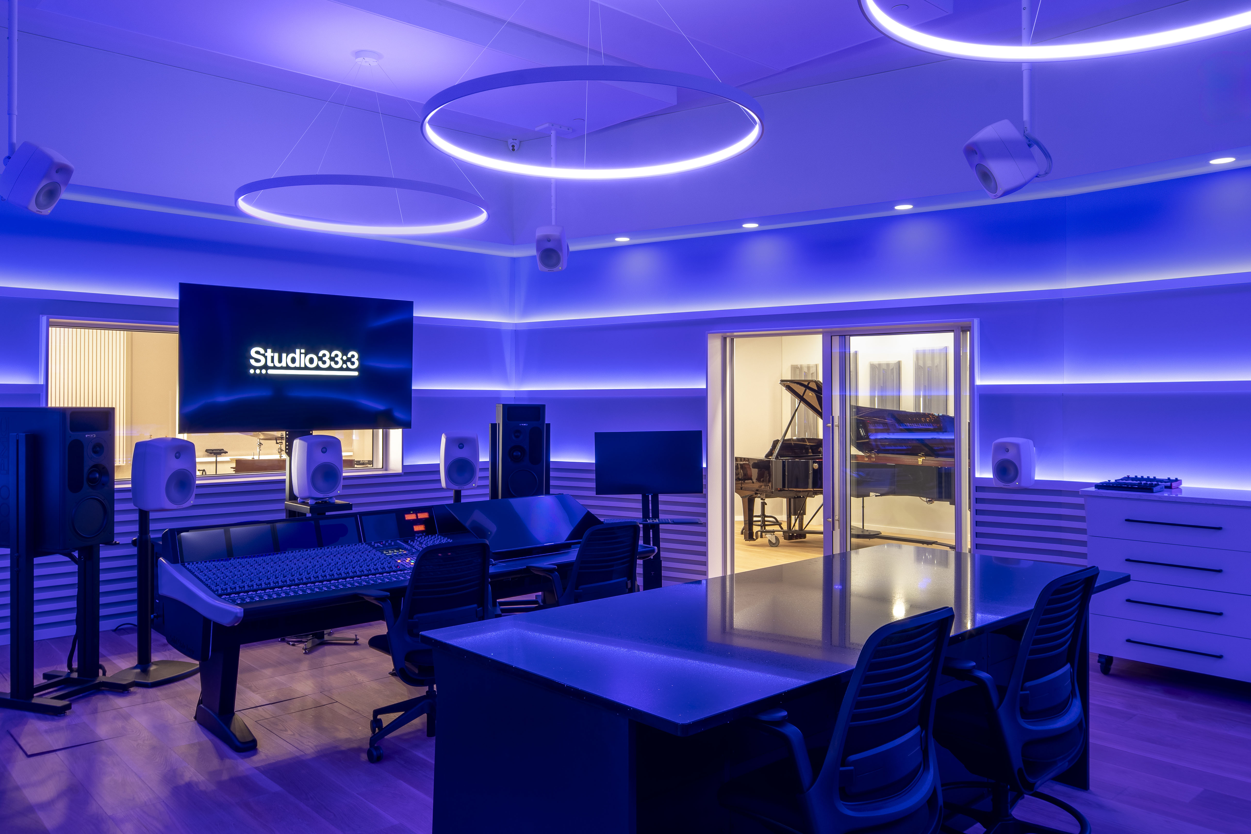 Studio33:3 combines spiritual purpose with world-class design, including an SSL Duality console and 10.5 miles of hand-installed cabling, all housed in a stunning, acoustically optimized facility with design contributions from Simplified Acoustics and Acoustic Fulfillment. Every detail, from the floated floor infrastructure to the custom lighting and mic cabinetry, was carefully planned to offer both technical excellence and artistic inspiration.