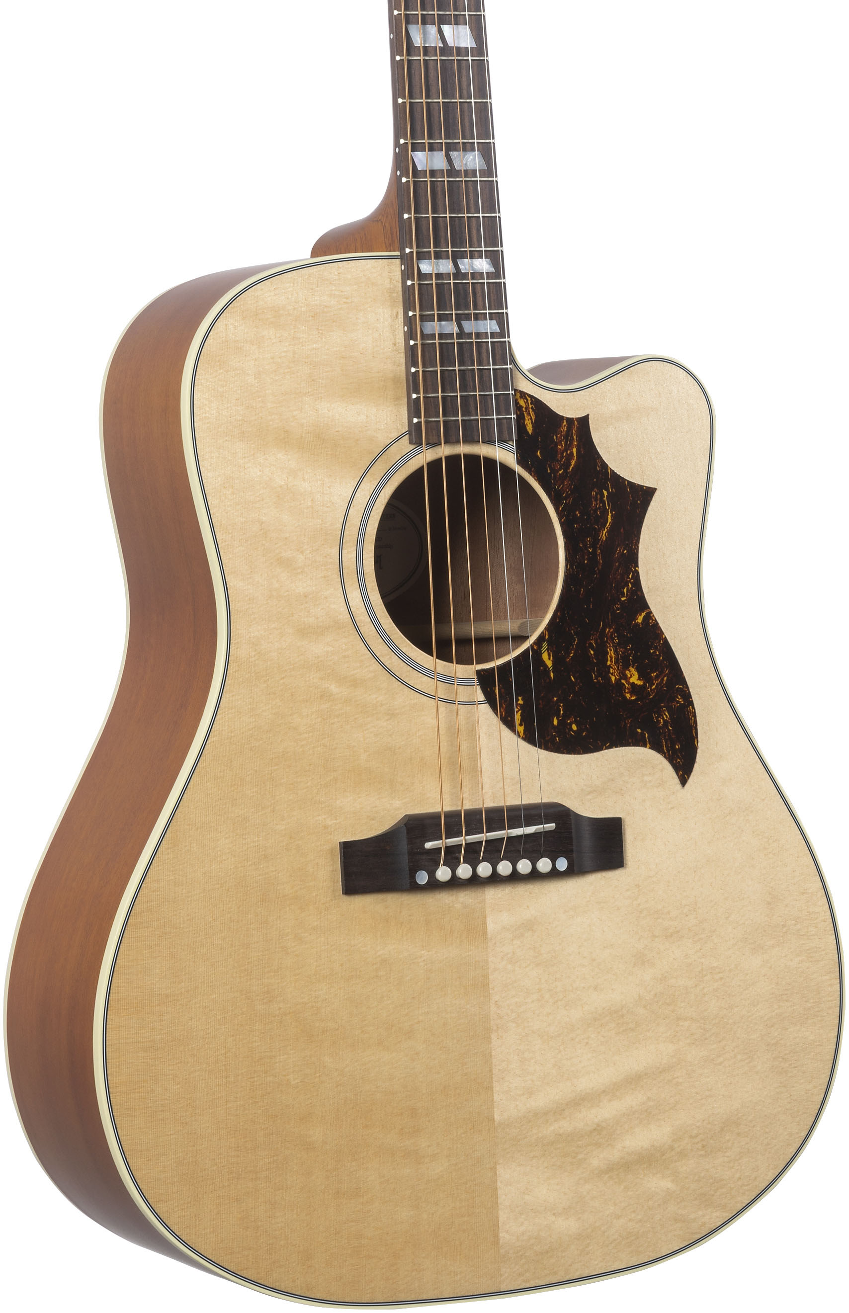 First introduced in 1955 as the sibling to Gibson’s Southern Jumbo, the original Country Western quickly earned a reputation for its warm voice, refined aesthetics, and versatility among singer-songwriters and performers. The Country Western is essentially the same as Gibson’s iconic Hummingbird model in construction but offers an alternative for players seeking a less ornate design. This new Studio EC reissue honors that legacy with a natural satin-finished solid Sitka spruce top, a cherry-stained mahogany body and neck, and an updated cutaway design for enhanced upper-fret access. Vintage-inspired touches, including a yellow tortoiseshell pickguard, gold block Gibson logo and nickel hardware with white-button tuners, strike a balance between understated elegance and cowboy cool.