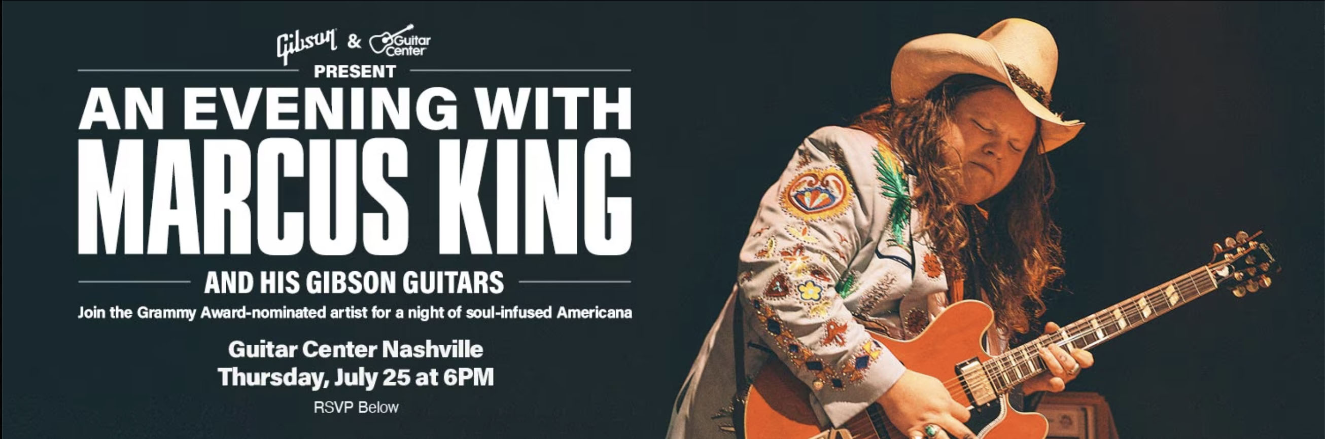 WHO: Guitar Center is teaming with Gibson on 7/25 for an exclusive event at its Nashville (One Hundred Oaks) store featuring acclaimed guitarist and singer-songwriter Marcus King.