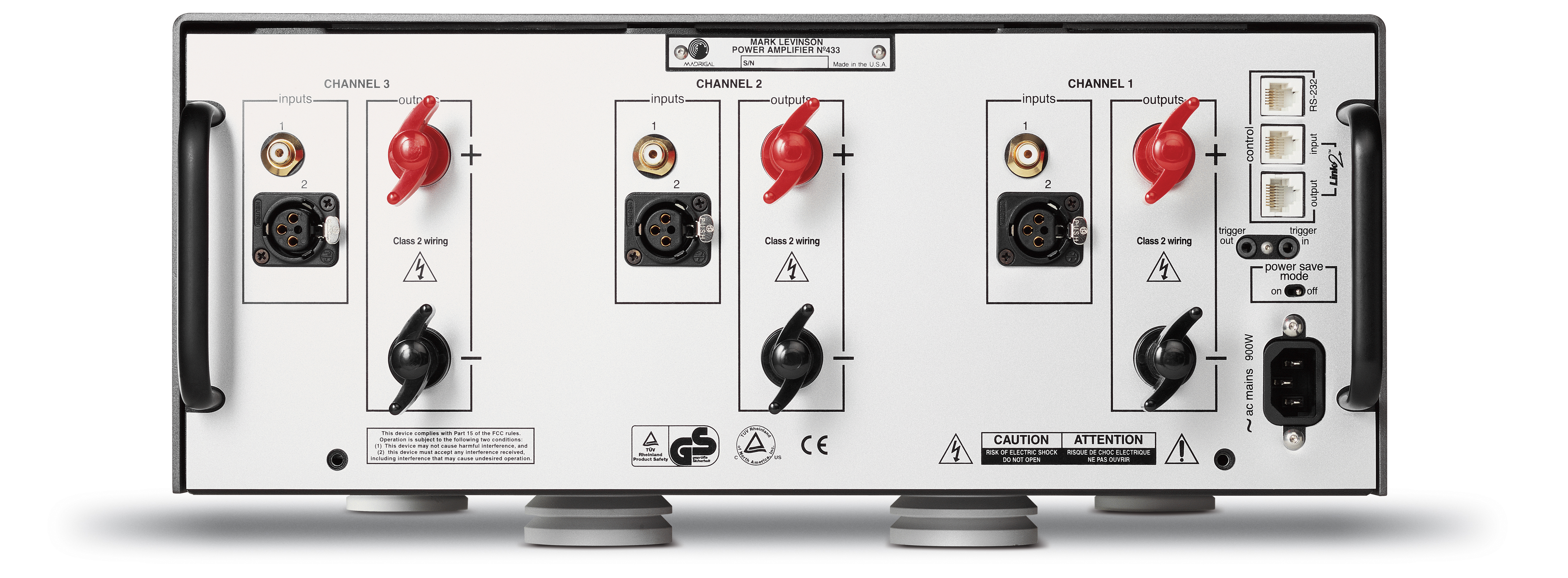 level Mark Levinson power amplifiers. The triple-mono No433 is currently