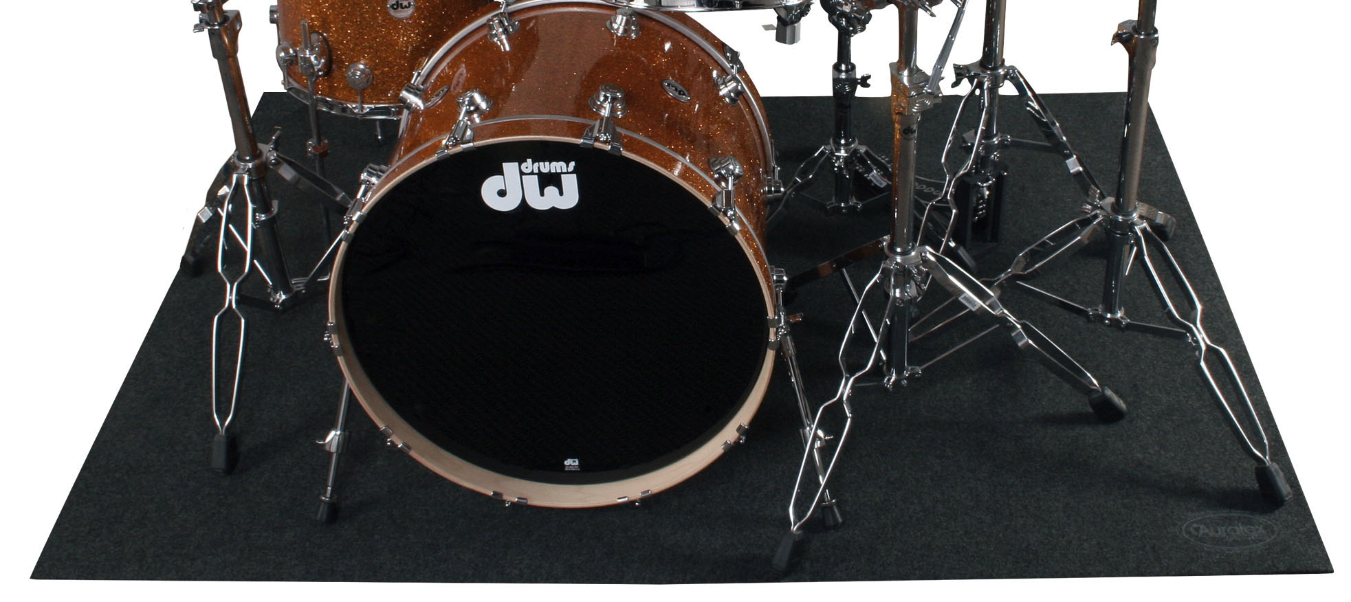 The HoverMat is a sturdy, slip-resistant drummers’ mat that improves acoustical isolation and clarifies drum tone. The HoverMat features a 4'x6' section of Auralex’s acclaimed sound-deadening SheetBlok™ sound barrier material, covered with charcoal gray Ozite-type, commercial-grade, road-ready carpet, and is ideal for musicians on the go, worship groups, live performance venues, or anywhere a drum kit needs additional isolation. The HoverMat can be rolled up after any performance or session, and the included heavy-duty cinch sack makes transport a breeze.