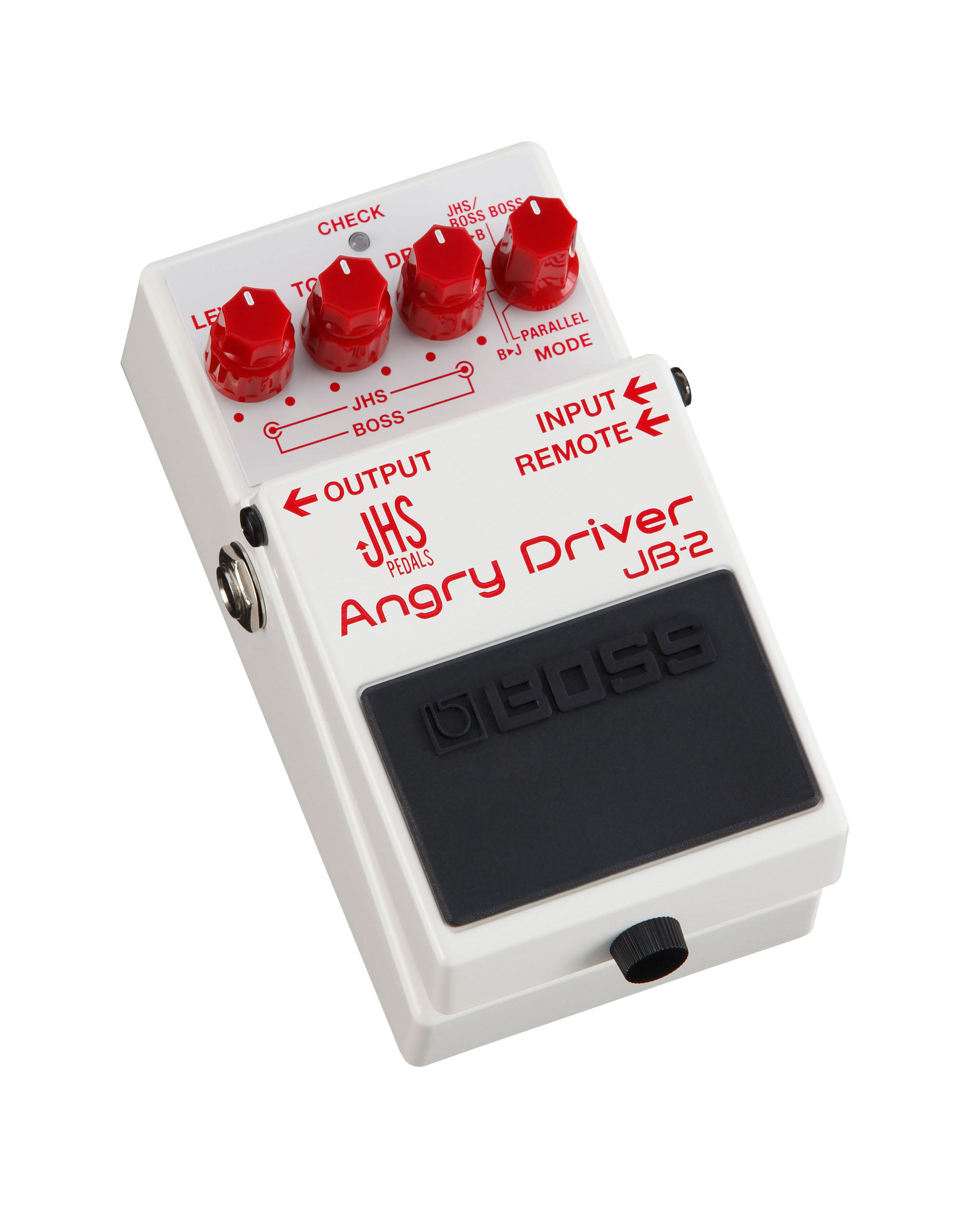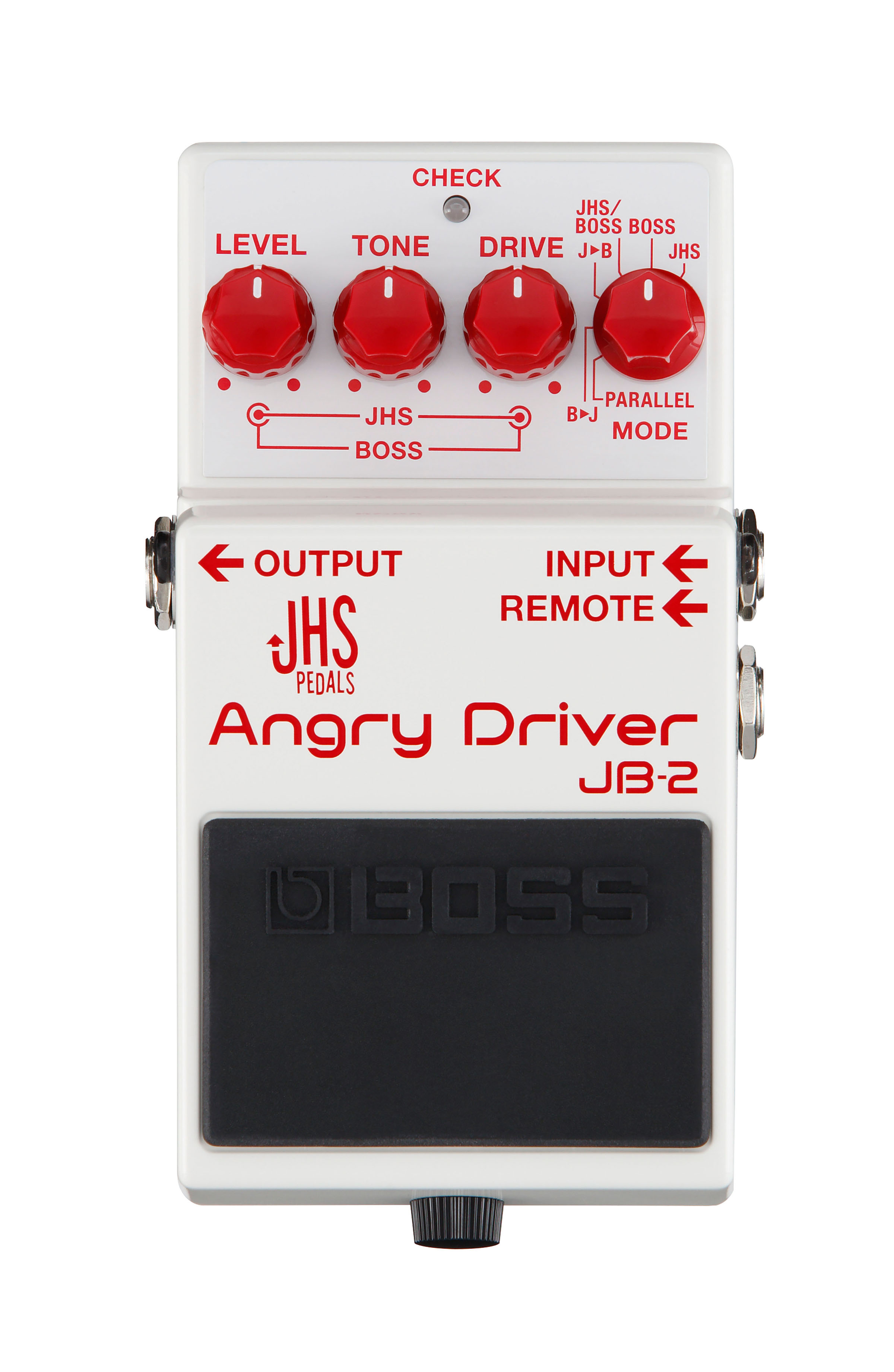 Los Angeles, CA, September 8, 2017 — BOSS introduces the JB-2 Angry Driver, a new pedal co-developed with JHS Pedals to celebrate the 40th anniversary of BOSS compact pedals. Housed in the classic BOSS compact design, the JB-2 pairs the iconic BOSS BD-2 Blues Driver with JHS Pedals’ popular Angry Charlie high-gain overdrive in a combined circuit enhanced for dual-mode operation. A six-way mode selector allows the player to choose between the two overdrive types or combine them in various series and parallel configurations. This enables the JB-2 to produce an enormous range of sounds, from subtle boost to ultra-high-gain distortion.