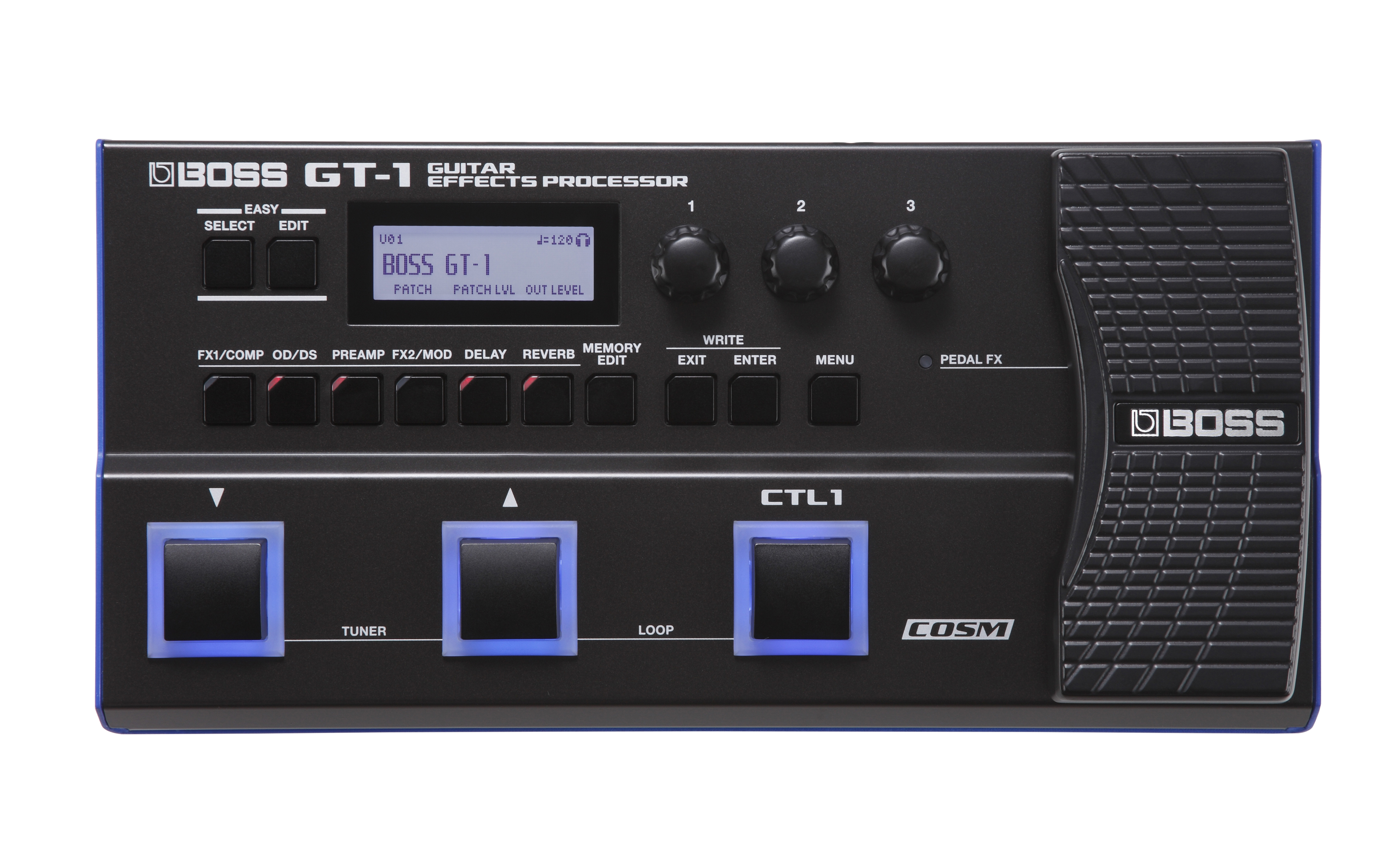 Driven by BOSS’s flagship GT-series engine, the compact GT-1 Guitar Effects Processor delivers world-class amps and over 100 effects types. Its portable design features a built-in expression pedal and easy-to-use, streamlined interface. The Easy Select function allows users to quickly find patches by genre, distortion, or effect type; Easy Edit lets them tweak drive, modulation, and echo tones.