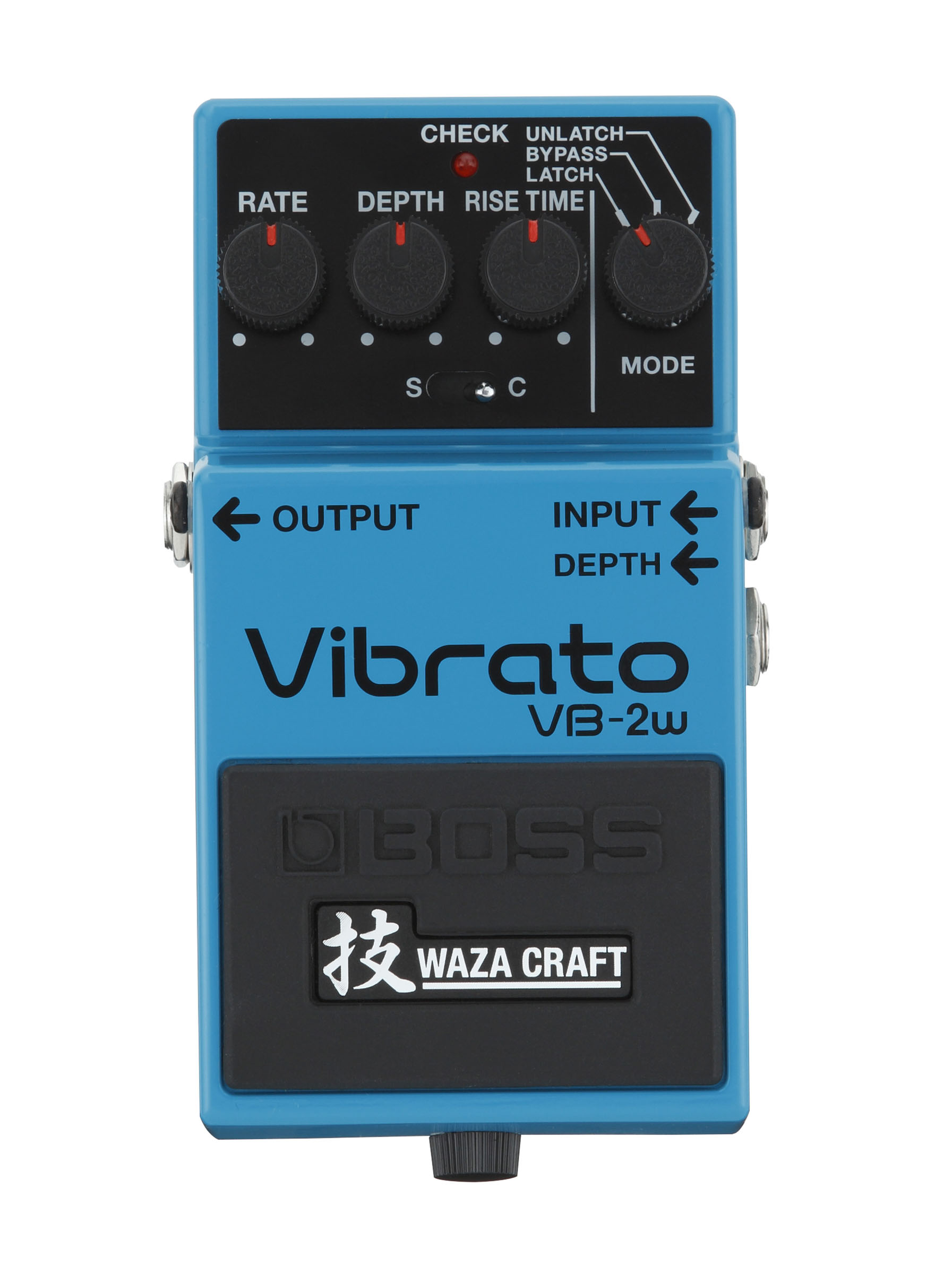 With the Waza Craft VB-2W, BOSS has recreated the original pedal while adding more range and control. In Standard mode, the VB-2W faithfully reproduces the warm, BBD-driven analog tone of the VB-2. Like the original, the user can adjust the vibrato rate and depth, and also control the time it takes for the effect to reach full intensity (called the “rise time”). A Latch setting provides normal stompbox on/off control, while Unlatch engages the effect only when the pedal switch is held, perfect for naturally applying vibrato effects as needed while playing.