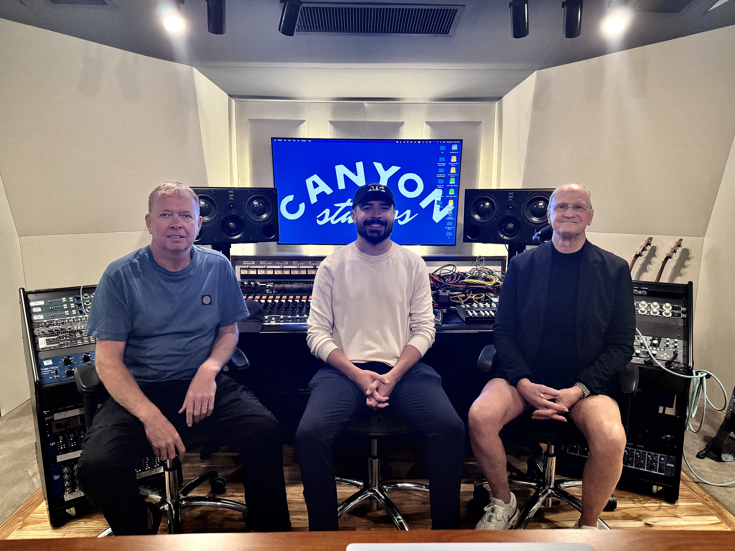 Photo caption 2: L-R: Studio builder Michael Cronin of Michael Cronin Acoustic Construction, who specs ATC monitors in his studio builds; Stephen Ernest, ATC Southeastern Sales Manager; and Carl Tatz, studio designer and PhantomFocus™ System (PFS) creator, in Canyon Studios East Studio A, with the PFS ATC SCM45A Pro Monitor System.