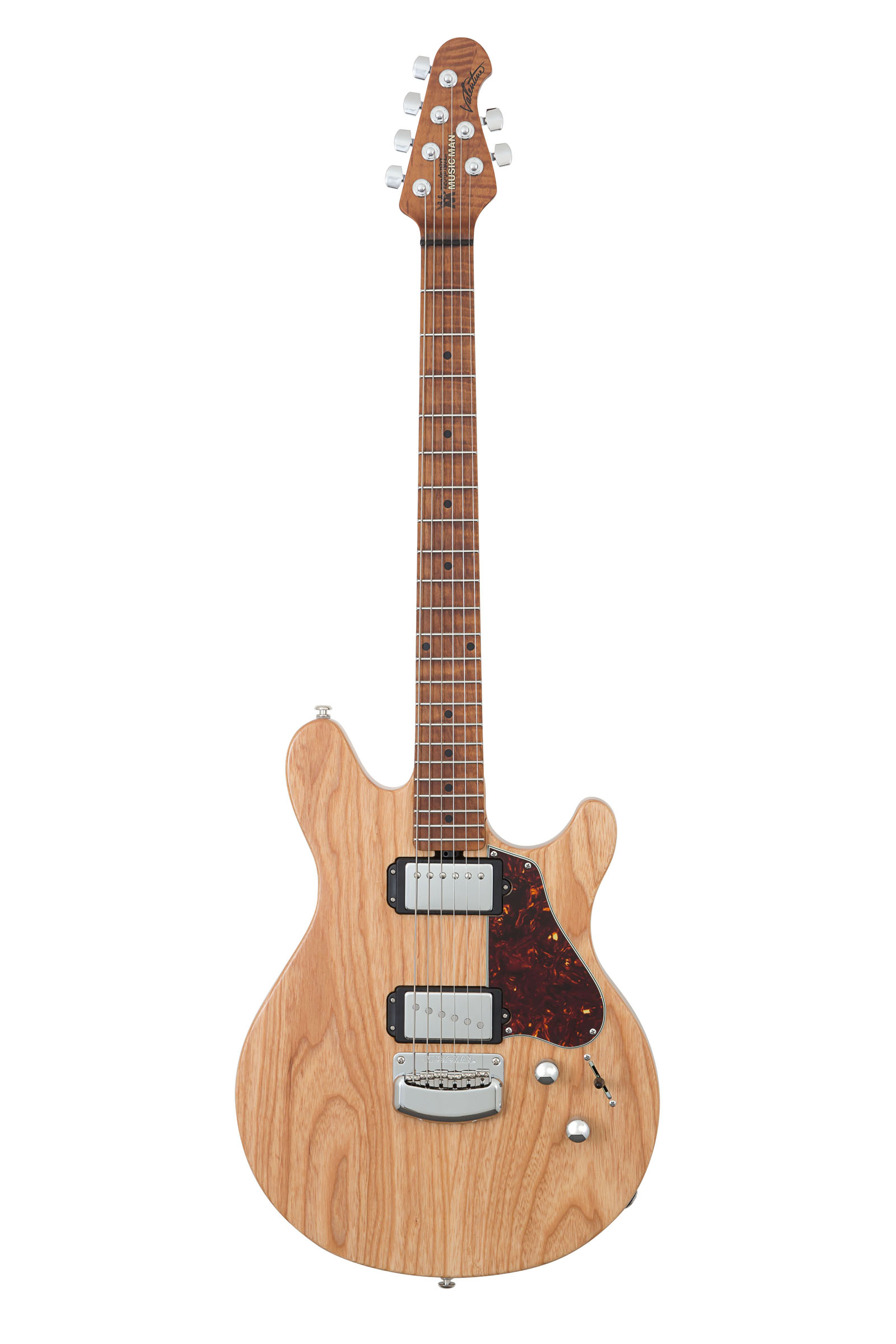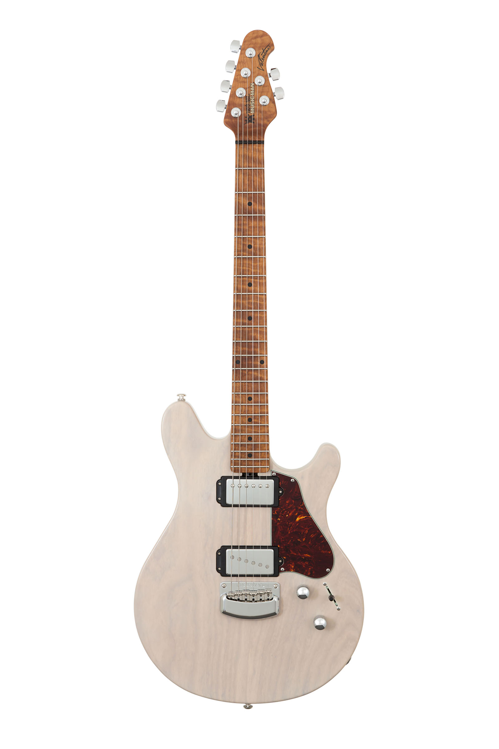 The Valentine, a mix of classic design aesthetics and innovative modern-day engineering, delivers unparalleled playability and performance, features a slab ash-body, two Ernie Ball Music Man designed pickups (1-humbucker/1-single coil) with active preamp, silent circuit and 3-way custom wired lever switch, coil tap with +20db boost, hardtail bridge with vintage bent steel saddles, 25.5-inch scale, oil- and wax-rubbed roasted maple neck with 10-inch radius fingerboard, 22 stainless steel frets, and an oversized 4-over-2 headstock with compensated nut, designed for superior tuning stability. The guitar also boasts an innovative tapered design that narrows the body of the guitar towards the top of the player, lightening the guitar without sacrificing tone and also improving playability by hugging the player more closely.