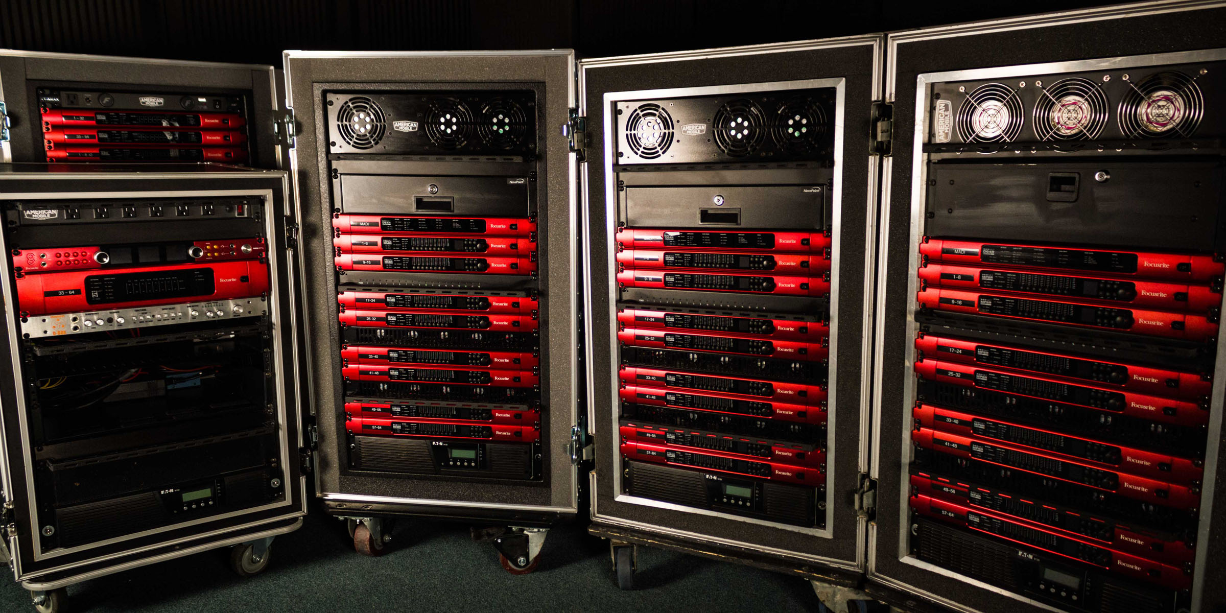 Photo caption 2: American Mobile’s arsenal of stage racks featuring tools from Focusrite’s RedNet range.