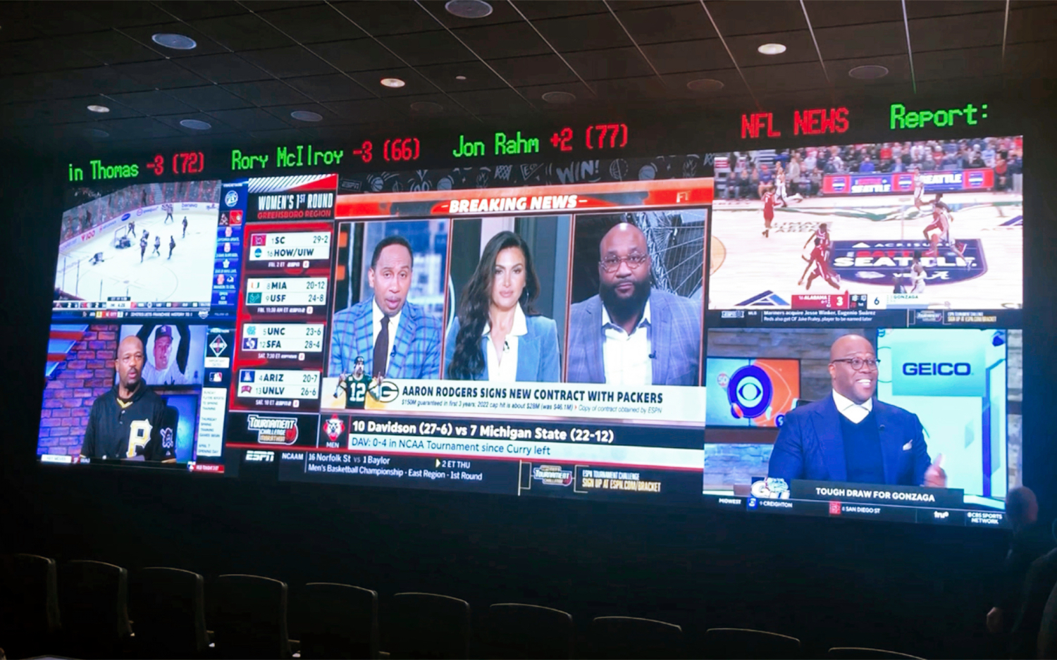 ISE, Barcelona, January 31, 2023 – The Dakota Magic Casino Resort, in Hankinson, North Dakota, opened in August of 1999 and hasn’t stopped expanding since. The 63,575-square-foot casino opened with a two-story, 84-room hotel, the next year adding 35,800 square feet of entertainment/convention space, and in 2004 a hotel expansion added two suites and 40 more rooms. The casino, owned and operated by Dakota Nation Gaming Enterprise of the Sisseton-Wahpeton Oyate Tribe, is now 160,000 square feet, with over 1,000 slot and video poker machines, keno, 18 table games, a high-stakes gaming area, poker room, lounge, fine-dining and buffet restaurants, and a golf course with clubhouse. But the latest addition, a new sportsbook that opened last year, has the venue’s biggest feature yet: a 31-foot-by-10-foot LED wall that can easily show eight sporting events simultaneously, go to a custom preset with two side by side or a host of options in between, thanks to technology solutions from Key Digital®. That includes 21 Key Digital KD-IP922™ encoders and 35 KD-IP922™ decoders, three of the new KD-MLV4x4Pro™ 4K UHD HDMI seamless matrix switchers and Key Digital’s industry-leading Compass Control® Pro software, allowing management to simply and intuitively reconfigure the display into any number of preset configurations from an iPad. All together, this exhaustive setup assures that sportsbook patrons will never miss a game or a race, no matter how busy a sports day or night it is.