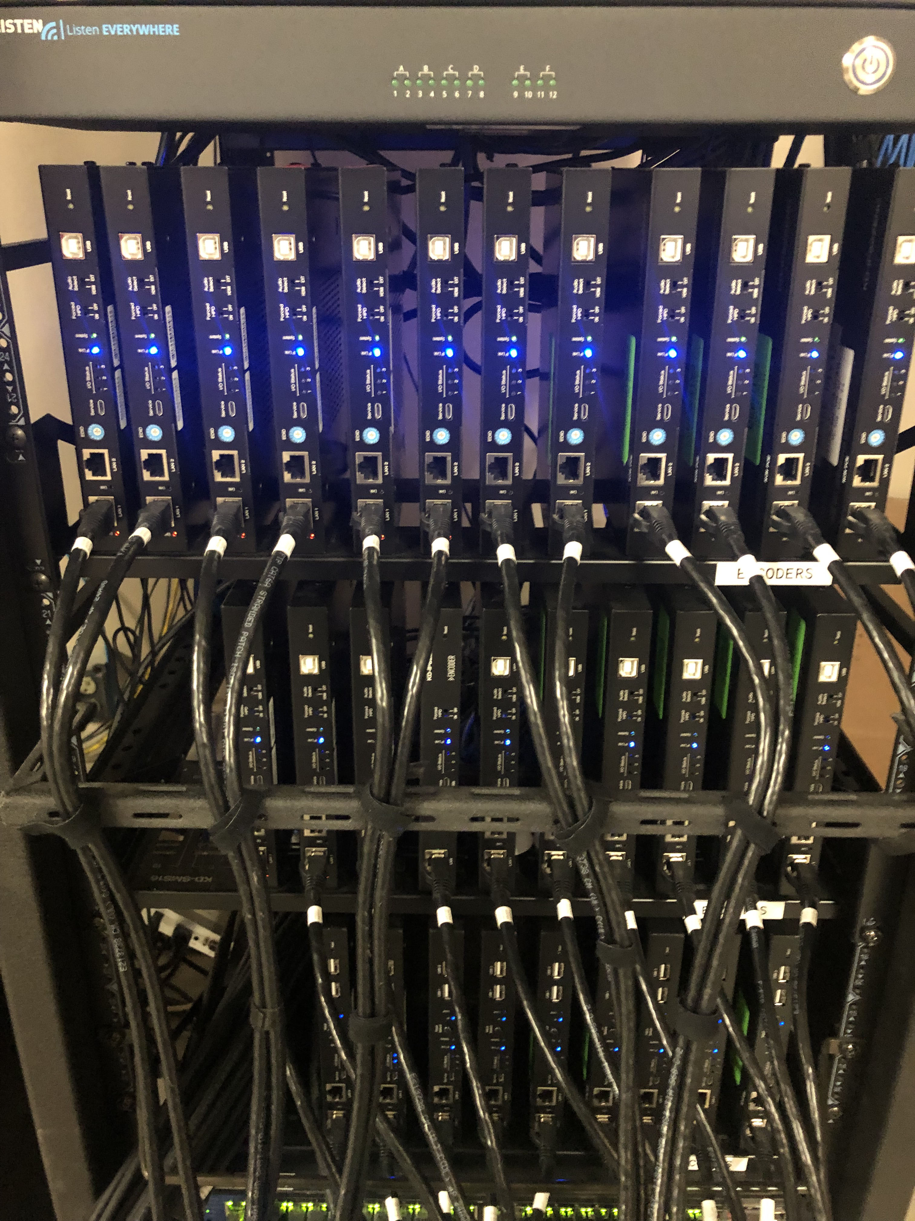 “The video wall can do eight different pictures at one time; we’re feeding it with nine different IP encoders, as well as three of the new KD-MLV4x4Pro UHD HDMI seamless matrix with multi-view tiling,” says Paul Hagen, in charge of technology and sales installations with Site On Sound, the Fargo, ND-based AV specialists that installed and integrated the new videowall. Pulling out an iPad, Hagen quickly glides through the process of reconfiguring the videowall by simply swiping and tapping among various preset configurations using Key Digital’s Compass Control Pro software, moving effortlessly from eight discrete video sources to two side by side, and everything in between, on what he describes as “the largest privately owned video screen that I could find in the state of North Dakota.” And while the new videowall is the crown jewel of the new sportsbook, there’s still plenty of other video throughout the space, including 22 other flat-screen televisions that are tuned to games and other matches, four more displays that show wagering odds and another monitor dedicated to in-house advertising, all also fed by the Key Digital 922 AVoIP devices.
