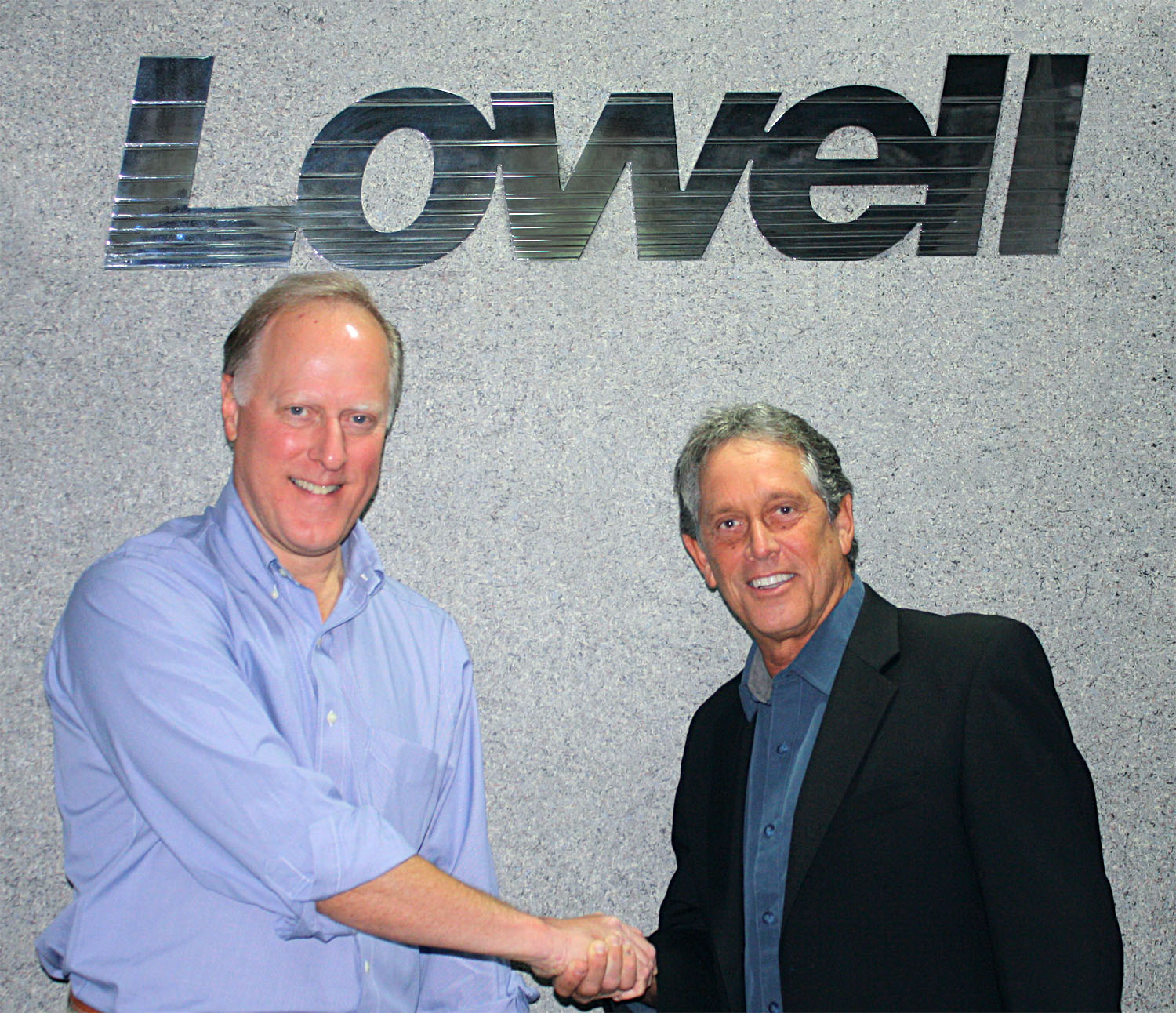 Photo Caption: Pictured L-R: John J. Lowell, Lowell Manufacturing President; and Robert Clyne, Clyne Media President/CEO.