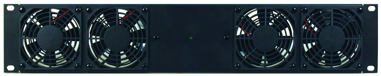 Panels are available in 2RU or 3RU with different size fans. Model FDC4-2 features four fans with 80mm diameter each (3.15-in.), providing total airflow of 104cfm (29db). Model FDC3-3 includes three fans with 120mm diameter each (4.72-in.) for total airflow of 220cfm (38dB).