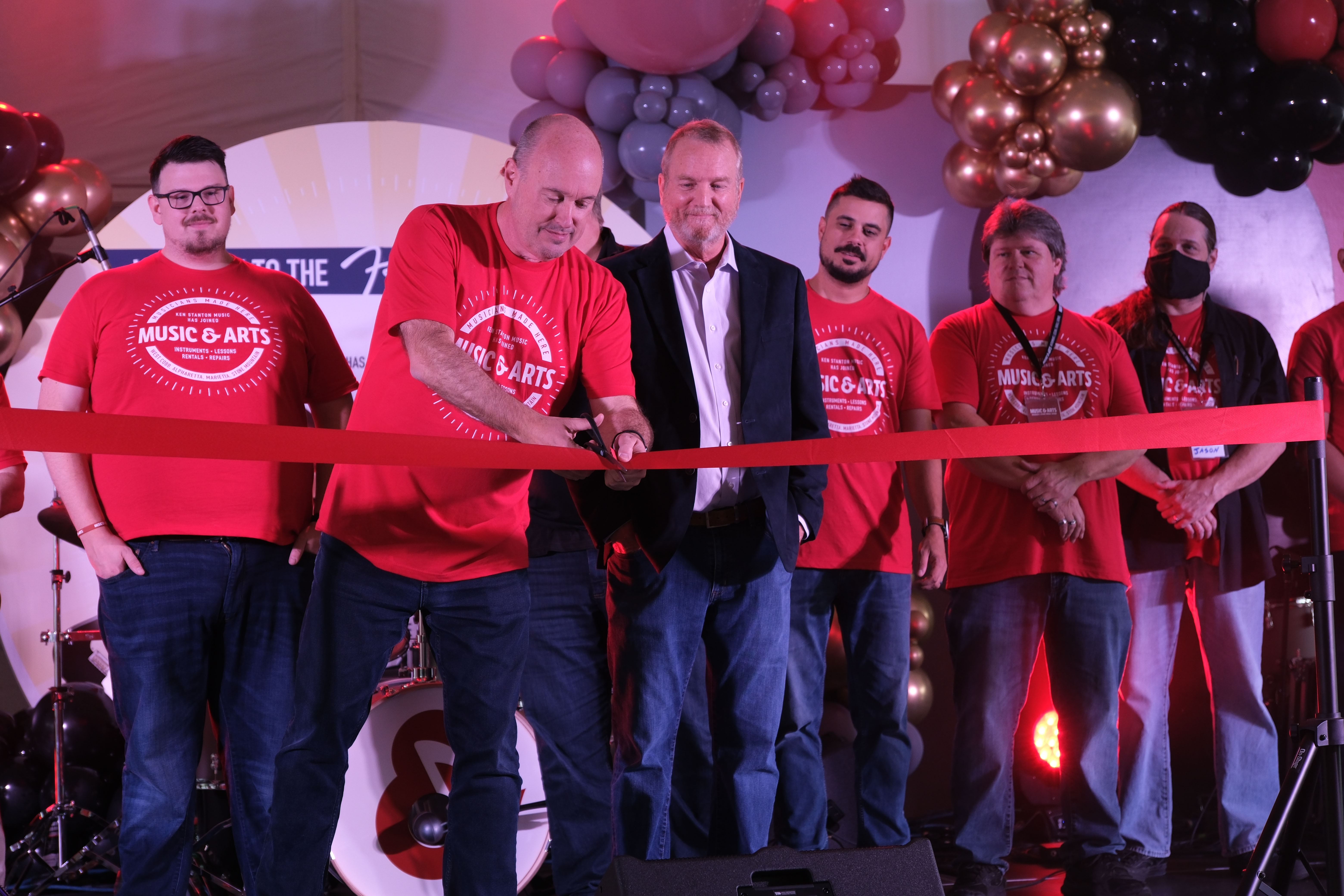 Music & Arts marked the occasion of Ken Stanton Music joining the M&A family by thanking its dedicated customers and local supporters through various activities and promotions at the Nov. 12 block party. The day kicked off at 11 a.m. with the Marietta City High School Pep Band performing on the event’s main stage, followed by clinics sponsored by Yamaha. Mark Gauthier, Music & Arts National Retail Marketing Manager, took the stage at 1:00 p.m. and welcomed the crowd, and then proceeded to introduce Jeff Gottlieb (President of Music & Arts) and Kenny Stanton (former owner, Ken Stanton Music) for the formal ribbon cutting ceremony to signify the store’s transition from Ken Stanton Music to M&A. Attendees enjoyed live music from local acts Mad Margritt, That's What She Said, Shyanne and 84 (Van Halen Tribute), food truck fare, exclusive giveaways, clinics and product demos. On-site food trucks included Loaded Taco and Loaded Burger – providing free food to the first 400 attendees (200 per truck). Top instrument vendor representatives were on hand, including personnel from DW Drums, Fender, Gibson, Martin, Taylor, and Yamaha. Several thousand dollars of gift cards were distributed to attendees, and two $650 scholarships to the Conn-Selmer Institute (CSI) for educators were also awarded at the event.
