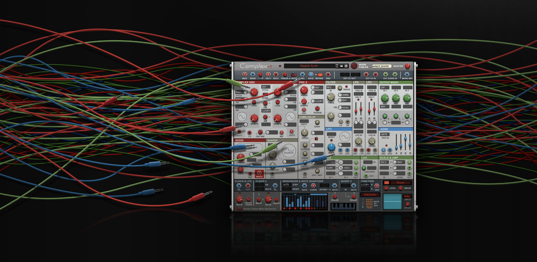 STOCKHOLM, Sweden December 18, 2018 — Propellerhead Software today released Complex-1, a modular synthesizer plugin for Reason. Whether you’re looking to add flavor to your next song, or if you’re dreaming of wires and wall-to-wall modules, Complex-1 is a synth lover’s dream machine. Drawing from several schools of modular synth aesthetics, Complex-1 brings the quirks, freedom and sonic depth of modular synthesis to your Reason Rack. Boasting a 4x oversampled synthesis engine, a freely routable signal and modulation path, Complex-1 sounds like nothing else.