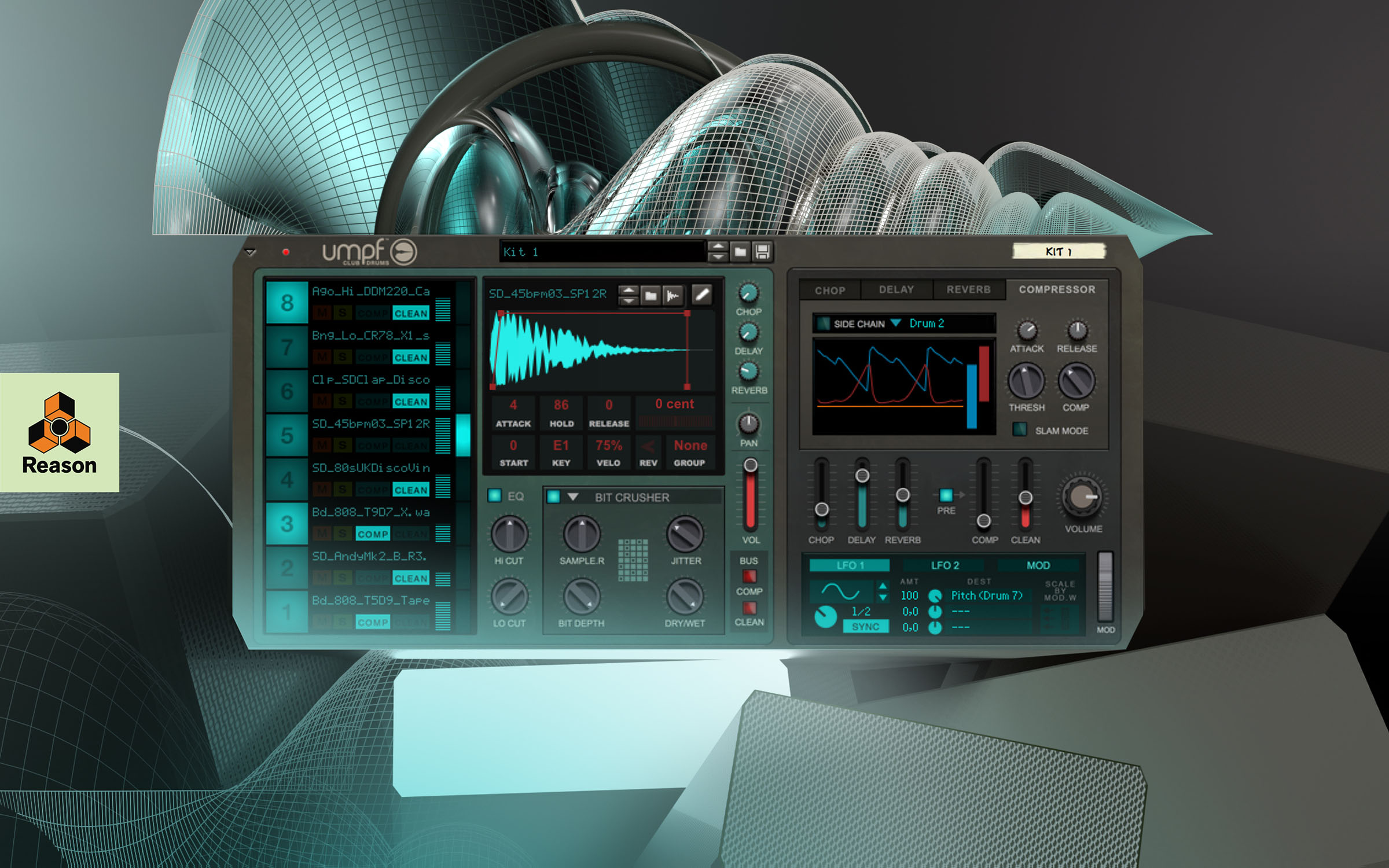 “Making club-ready drum tracks has always required producers to hand-select samples and set up complex routing for sidechain processing or modulation,” said Lukas Lyrestam, Product Manager of Propellerhead. “Finally there's a solution that does it all with one device – right in the Reason rack. By combining cutting-edge drum sounds with powerful processors and easy-to-use controls, the aptly named Umpf Club Drums allows you to quickly dial in powerful, evolving electronic beats.”
