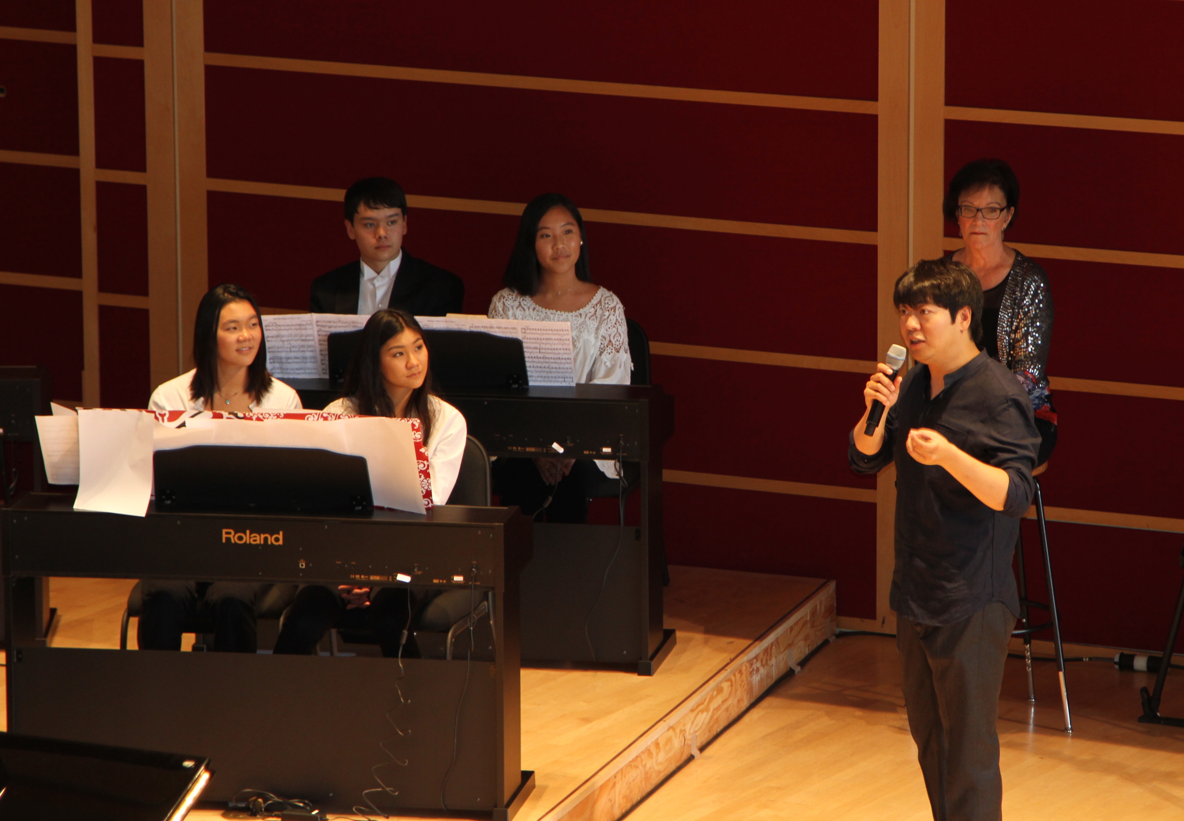 Los Angeles, CA, October 20, 2015 — One hundred piano students from California’s Bay Area recently took the stage at Sonoma State University’s Weill Hall to perform one of the most challenging – and unique – concerts they had ever experienced. Each student was paired with another student on one of 50 Roland RP401R digital pianos. Together, they performed a two-handed arrangement of Schubert’s Marche Militaire No. 1 in D major and Brahms’s Hungarian Dance No 5. in F-sharp minor — accompanied by world-renowned pianist Lang Lang.
