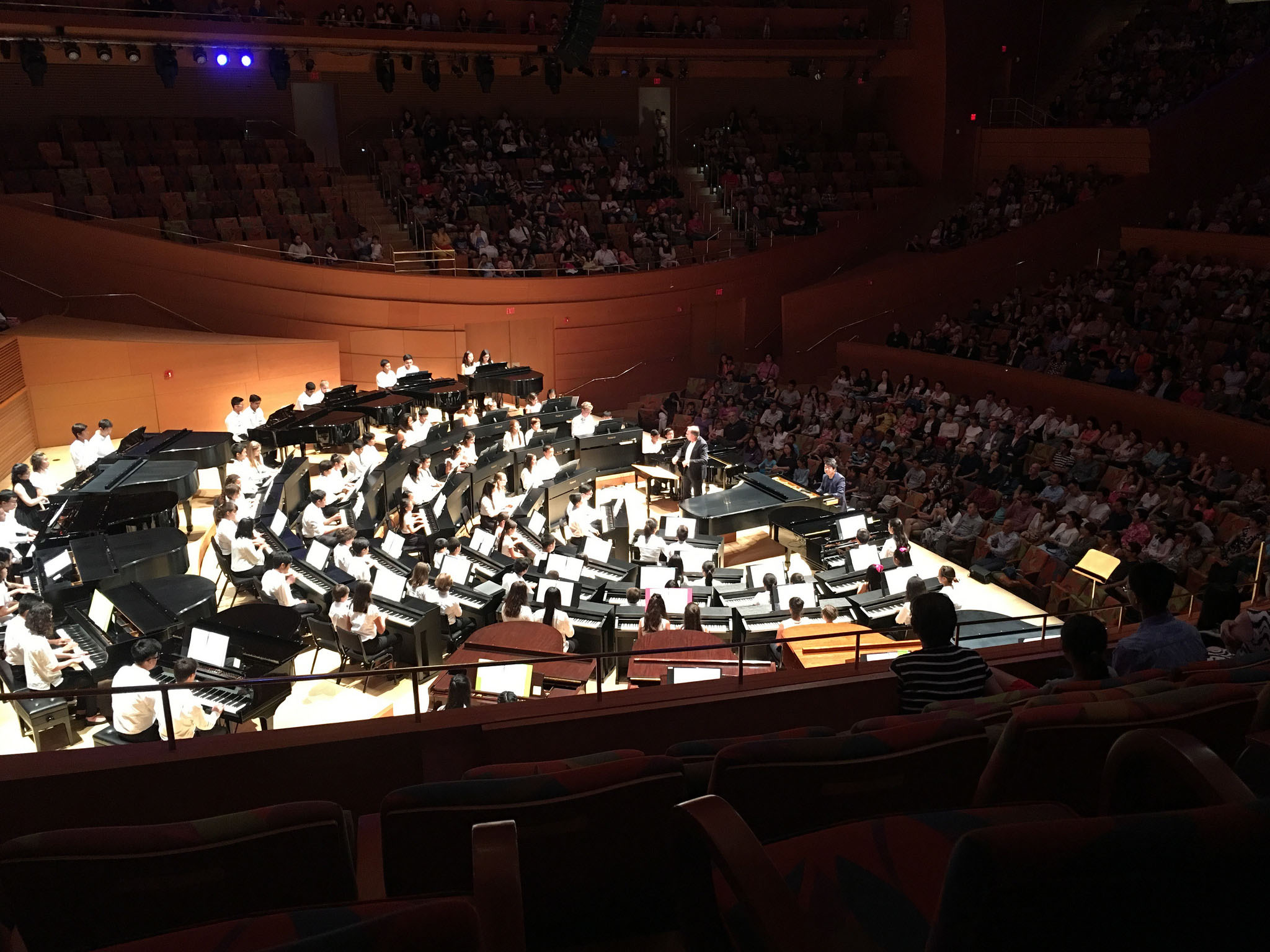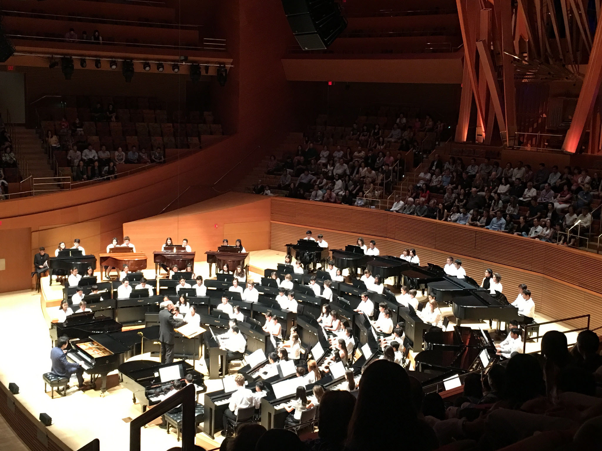 Los Angeles, CA, July 14, 2016 — Classical piano sensation Lang Lang has been bringing his unique “101 Pianists” young musicians concert to stages around the globe. On July 11, 2016, the event came to the L.A. area for the first time, co-presented by the Lang Lang International Music Foundation and the Los Angeles Philharmonic. One hundred piano students from the Colburn School of the Performing Arts and the Colburn School Music Academy took the stage at the Walt Disney Concert Hall to perform in a unique concert environment. Each student was paired with another student on one of 50 Roland HP-504 digital pianos as well as Steinway & Sons grand pianos. Together, they performed two-handed arrangements of Schubert’s Marche Militaire, Brahms’ Hungarian Dance, and Mozart’s Rondo alla Turca – accompanied by world-renowned pianist Lang Lang.