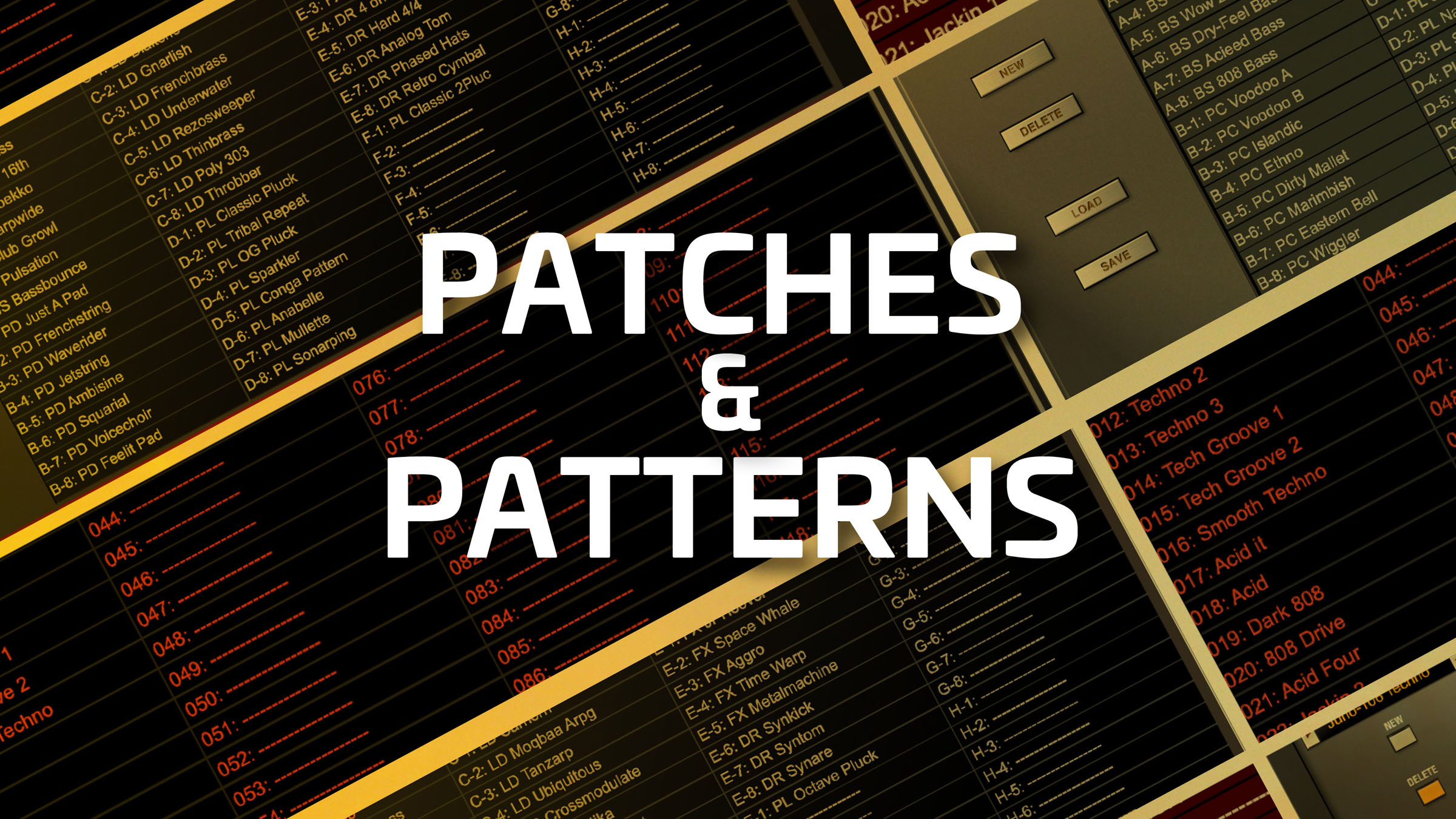 Roland Cloud’s new TB-303 set includes an array of 36 acid-flavored patterns, each with 8 variations for constructing full tracks. The TR-808 and TR-909 packs both contain 32 patterns with 8 variations that cover intros, grooves, breakdowns and drops—all with customized drum parameters that further enhance their playability.