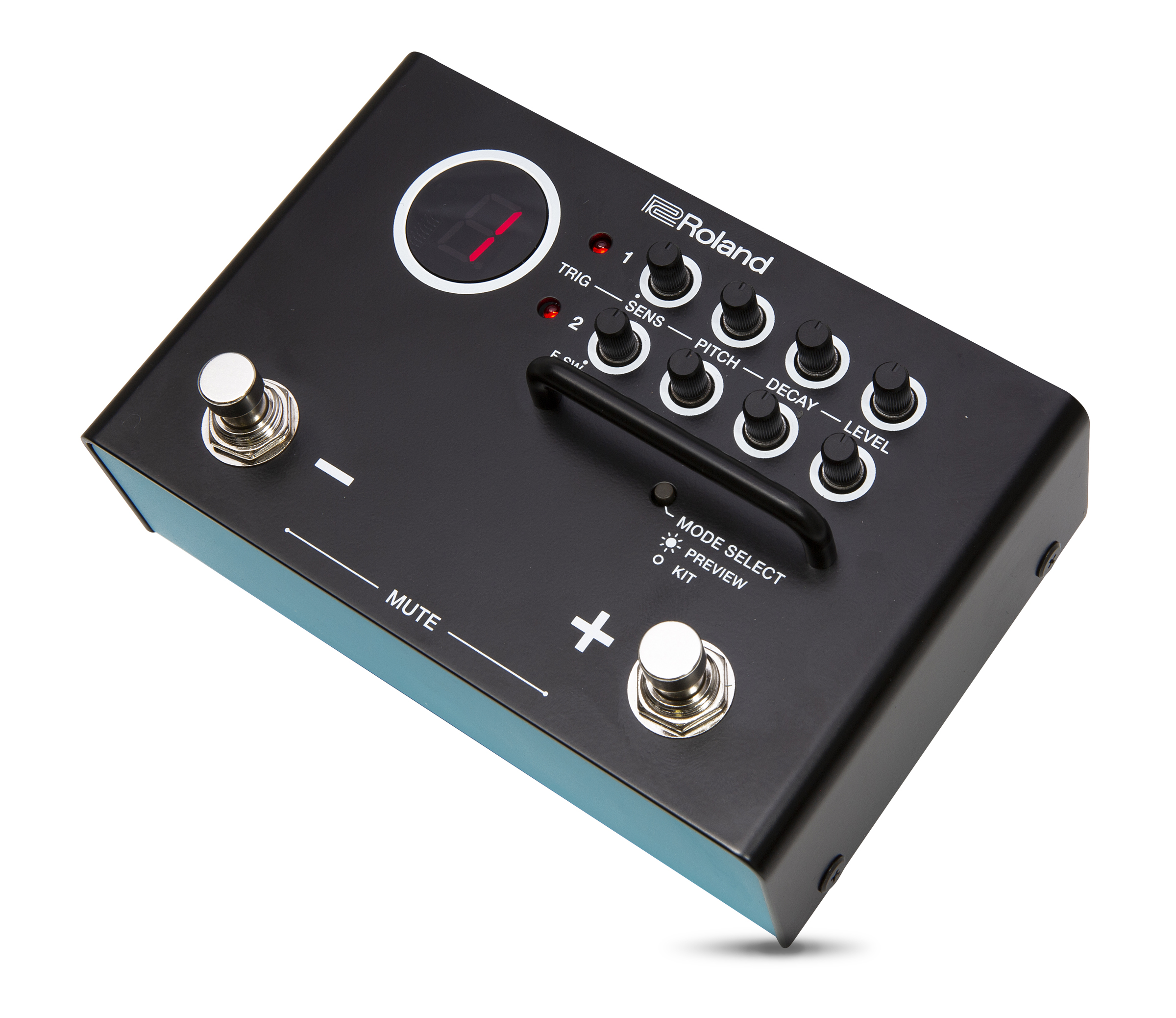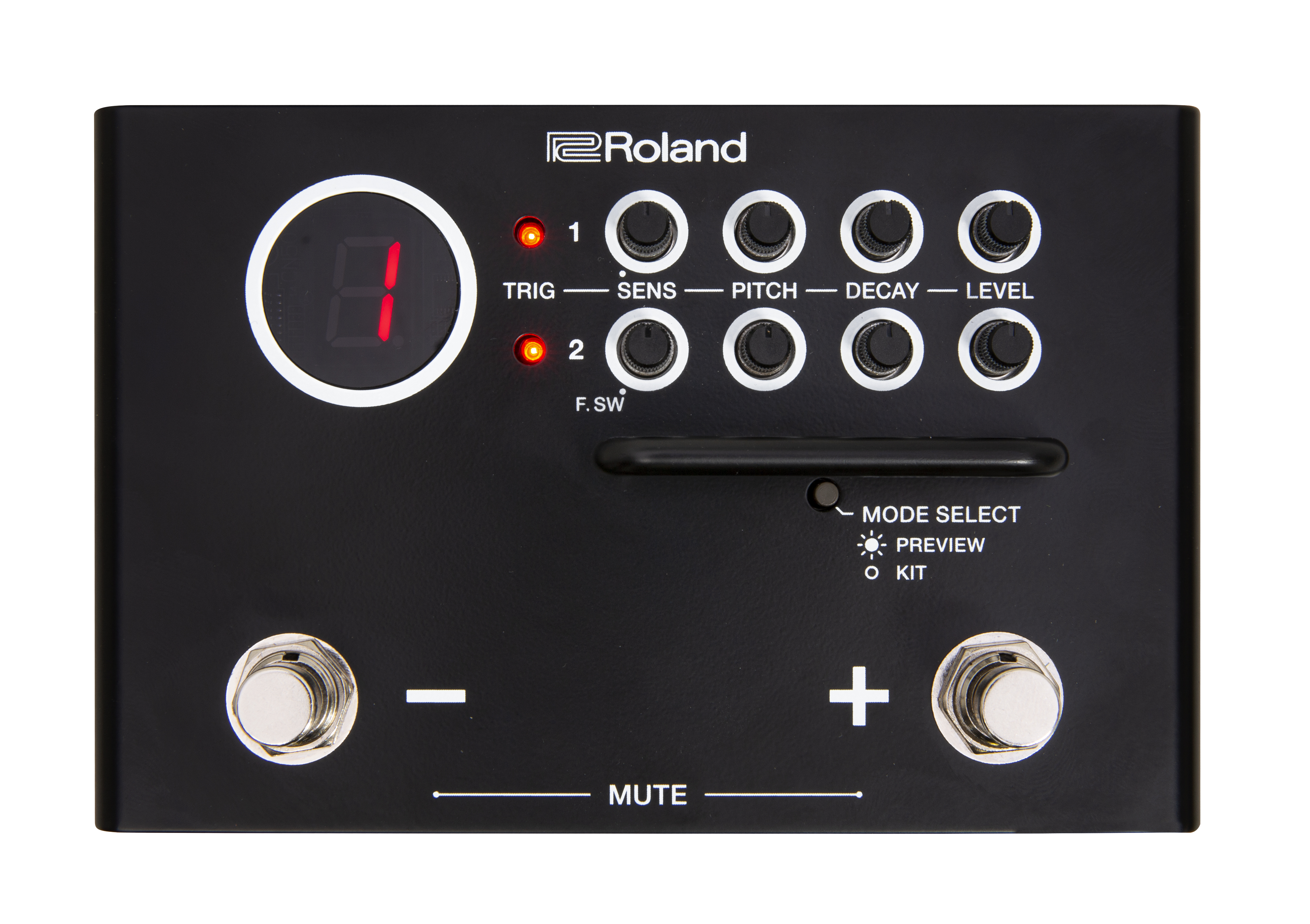 Designed much like a floor-based guitar effect pedal, the TM-1 runs on batteries or AC power and fits nicely alongside other elements of an acoustic kit. Two dual-trigger inputs can accommodate up to four Roland trigger devices, while direct-access control knobs and two footswitches make operation a breeze.