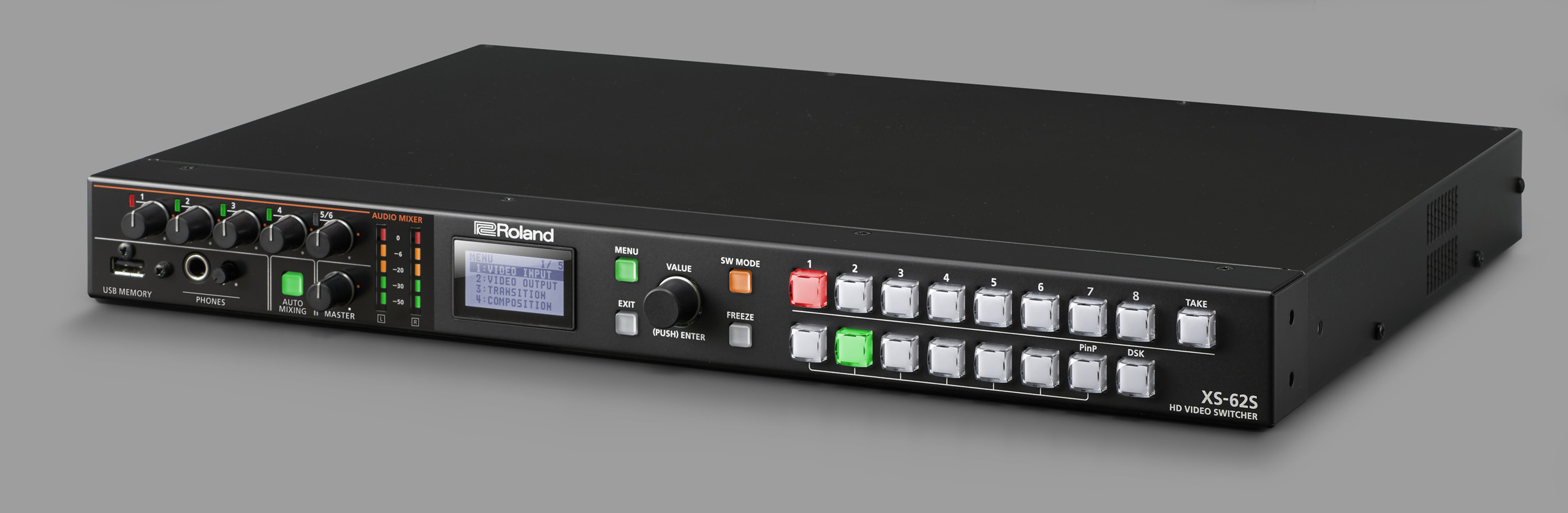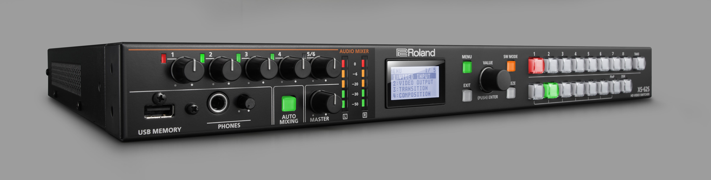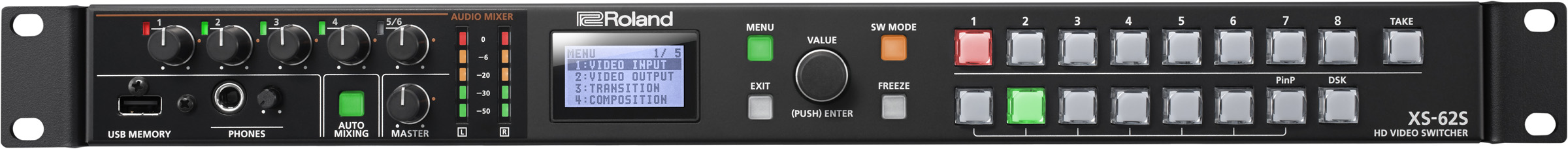 NAB Show, Las Vegas, NV, April 9, 2018 — Roland Professional A/V (booth SL4707) is now shipping the XS-62S, an integrated six-channel video switcher and audio mixer with PTZ camera control capabilities in a space-saving design, optimized for installed or portable live event, recording, broadcast and streaming productions. The XS-62S delivers a powerful feature set in a compact 1RU form factor and can be operated by a single user from easy-to-use front panel controls, or remotely from a Mac or PC or programmable interface.