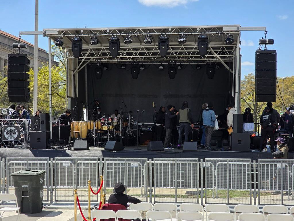 Photo caption 3: Stage setup for DC Emancipation Day 2025, featuring an RCF TT+ AUDIO GTX system