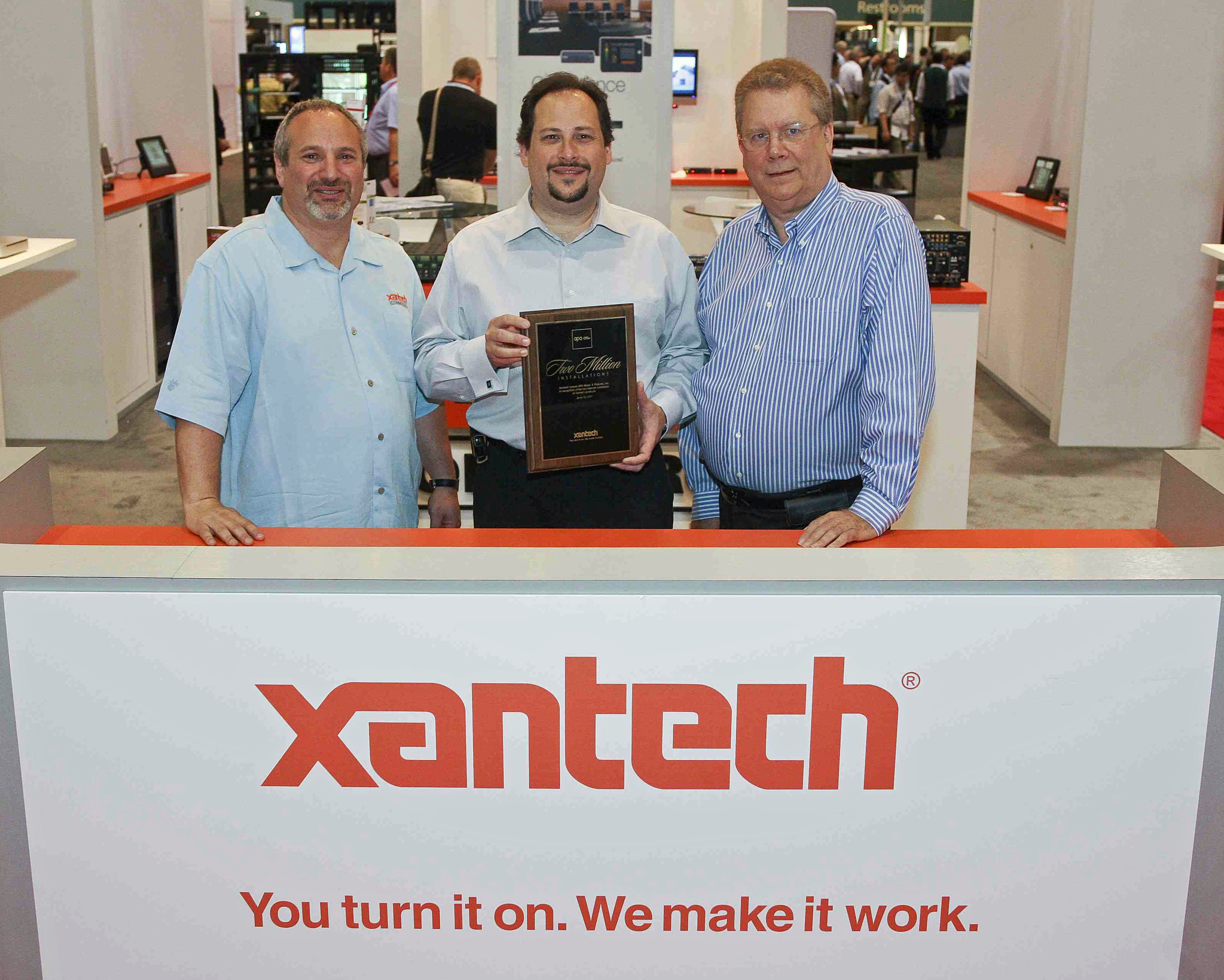 CARLSBAD, CA, June 15, 2011 — On June 15, 2011, at the InfoComm show in Orlando, Florida, Xantech presented Bensalem, Pennsylvania-based firm APA Music & Pictures, Inc. with a special plaque commemorating the two-millionth installation of Xantech products and thanking them for their years of Xantech use. The recent installation was performed at Mount Laurel, New Jersey’s Twelve Thousand Building Conference Center, housing training room and boardroom spaces for TD Bank. Xantech products, including the WIC1200 Web Intelligent Controller and CWTC10 10.4-inch Wireless Touch Controller, now form the foundation for the A/V distribution in several rooms in the building. APA has a long history as Xantech users, and they have been proud to push ahead with putting Xantech’s newest technologies to good use. The ceremony was attended by APA’s VP of Sales and Production Dave Pedemonti; Xantech President Graham Hallett; and Xantech Director of Business Development Rick Seegull.