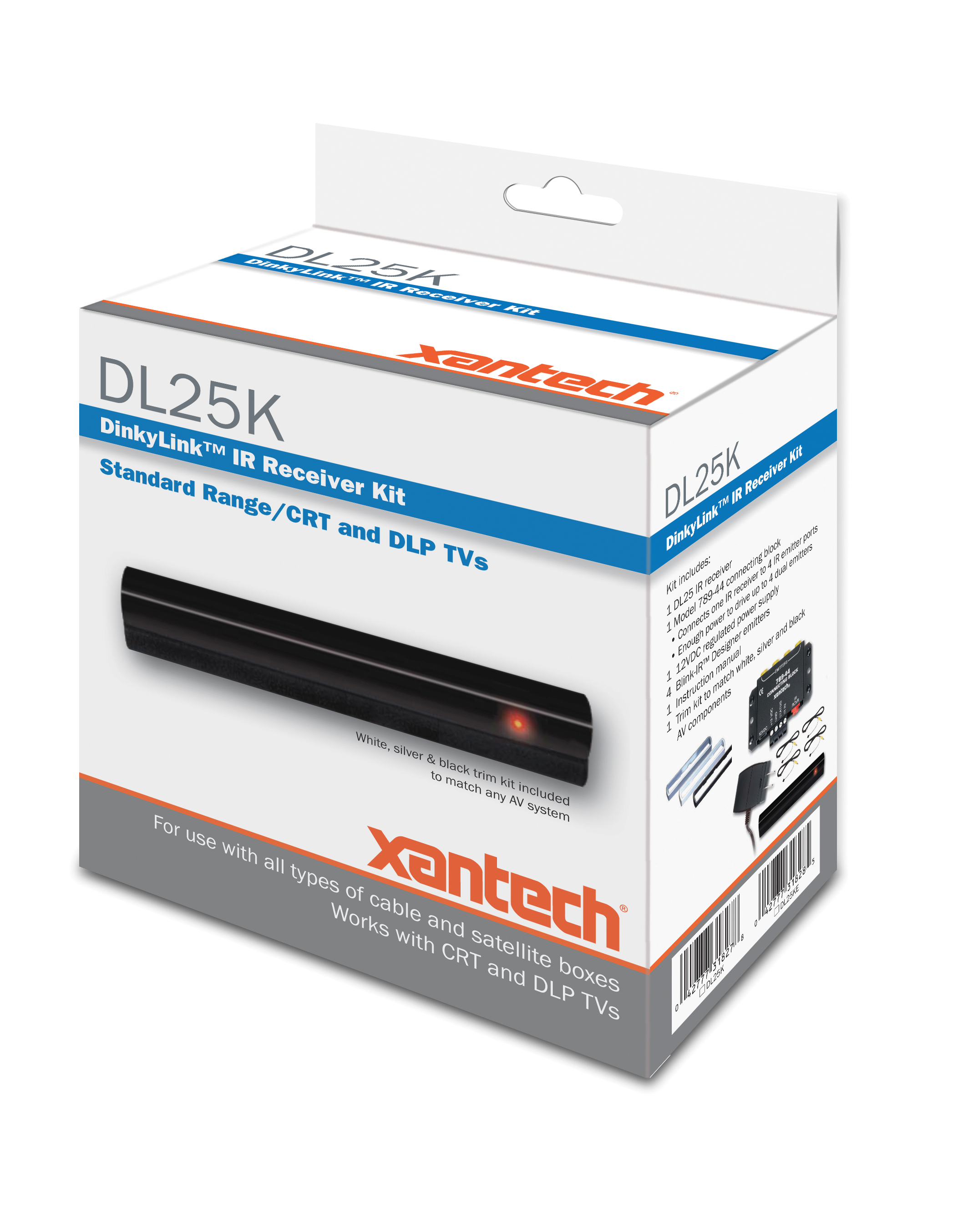 Xantech’s new IR systems are designed for this challenging new environment. Explains Mark Cerasuolo, Xantech’s Director of Marketing, “We now differentiate the kits by range and sensitivity instead of by type of television, and we simplified the selection process through our three-tier color-coded packaging system. Our Red/95 series has our highest level of interference-rejection circuitry, working with all types of TV’s and lighting at ranges up to 120 feet. Our Green/85 series is our most versatile kit, and works with all TV’s and lighting up to 80 feet. And our Blue/25 series is an outstanding value in IR control when the need is simply to control a traditional TV display under traditional lighting conditions.”