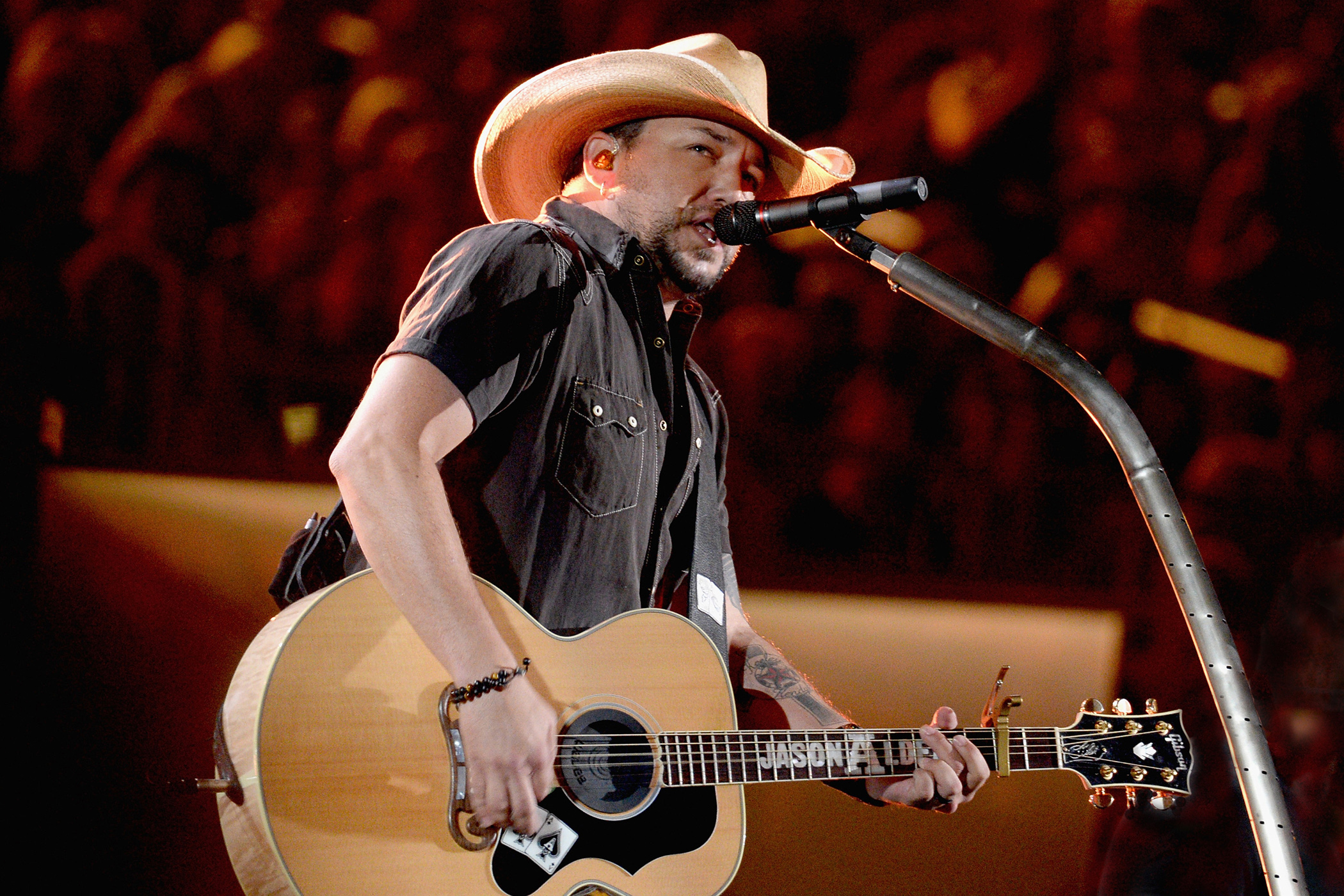 2015 ACM Awards Male Vocalist of the Year winner, and Audio-Technica endorser, Jason Aldean, performing at the 50th Academy of Country Music (ACM) Awards on Sunday, April 19, 2015, using Audio-Technica’s acclaimed Artist Elite® 5000 Series UHF Wireless System with the AEW-T6100a Hypercardioid Dynamic Handheld Transmitter. Photo by Mike Windle/Getty Images. (These photos are the property of Mike Windle/Getty Images and may be used by the press only for the purpose of one-time reproduction. Unauthorized use, alteration or reproduction of these photographs is strictly prohibited.)