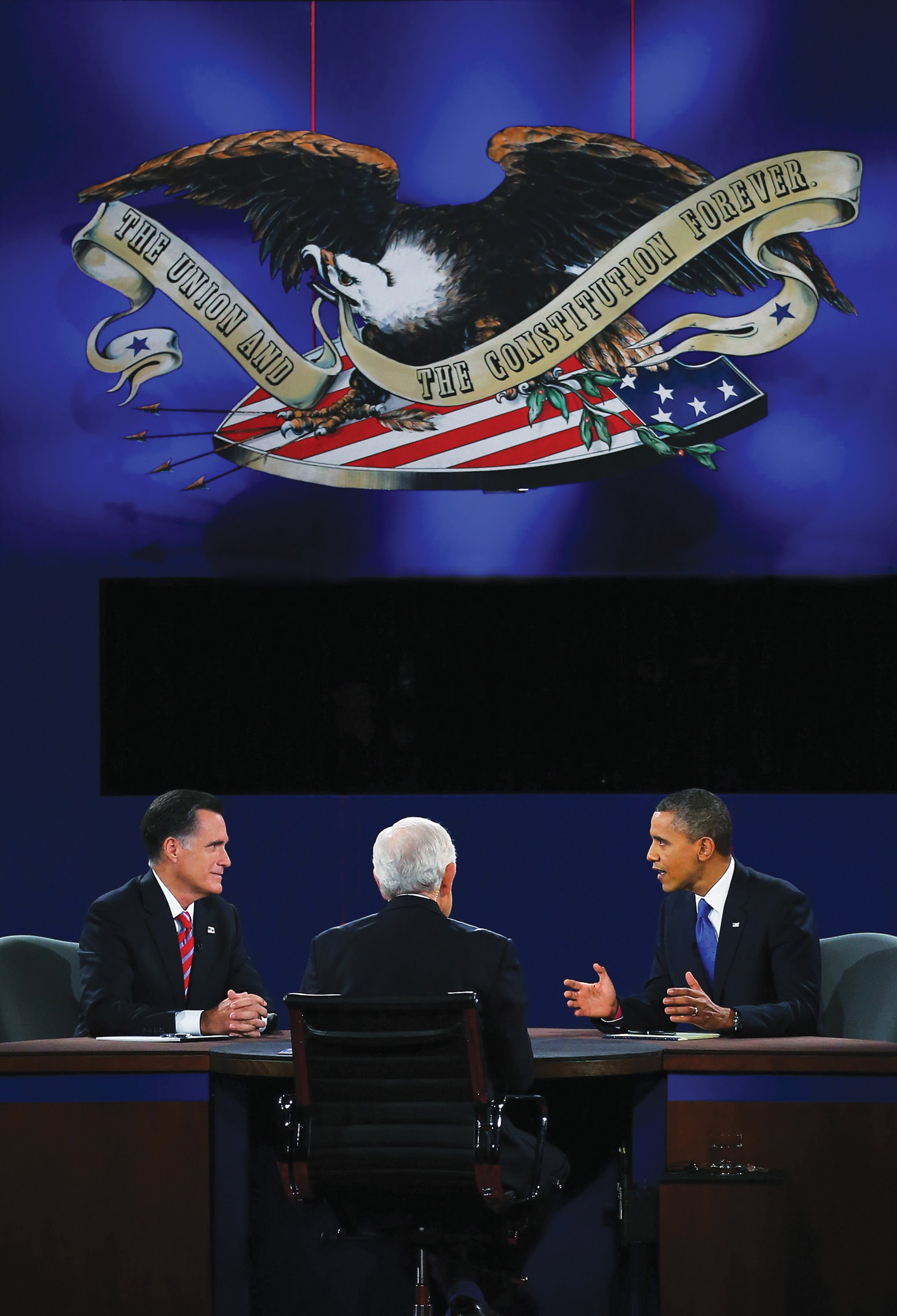 The fourth debate (conference table format), held on the evening of October 22 in Boca Raton, Florida, wrapped the 2012 debate series. Microphones used included AT898cW lavalier mics (5000 Series wireless with AEW-T1000a bodypacks) on each candidate and moderator Bob Schieffer, as well as wired AT898 mics for backup and redundancy and BP4071 mics for room ambience.