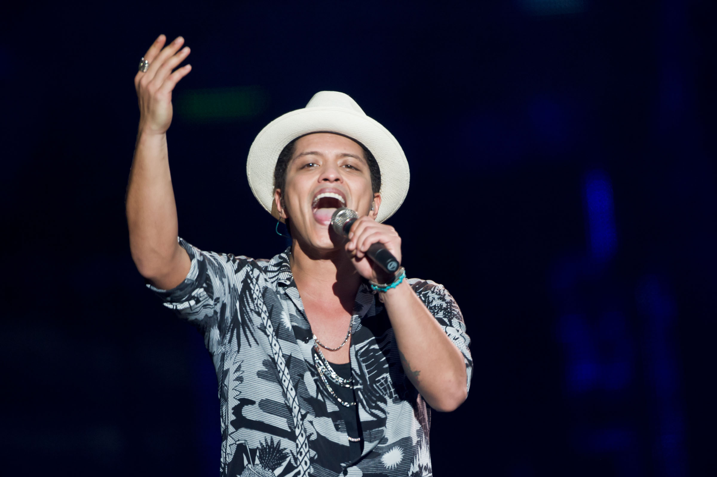 Photo Caption: As part of his Moonshine Jungle Tour 2014, GRAMMY®-winning singer-songwriter and producer Bruno Mars recently performed on stage at Wireless Festival in Finsbury Park on July 6, 2014, in London, United Kingdom, using the Audio-Technica Artist Elite® 5000 Series with AEW-T6100a Hypercardioid Dynamic Handheld Microphone/Transmitter. More information at http://www.brunomars.com/. Photo by Joseph Okpako/Redferns via Getty Images. (This photo is the property of Joseph Okpako/Redferns via Getty Images and may be used by the press only for the purpose of one-time reproduction. Unauthorized use, alteration or reproduction of this photograph is strictly prohibited.)