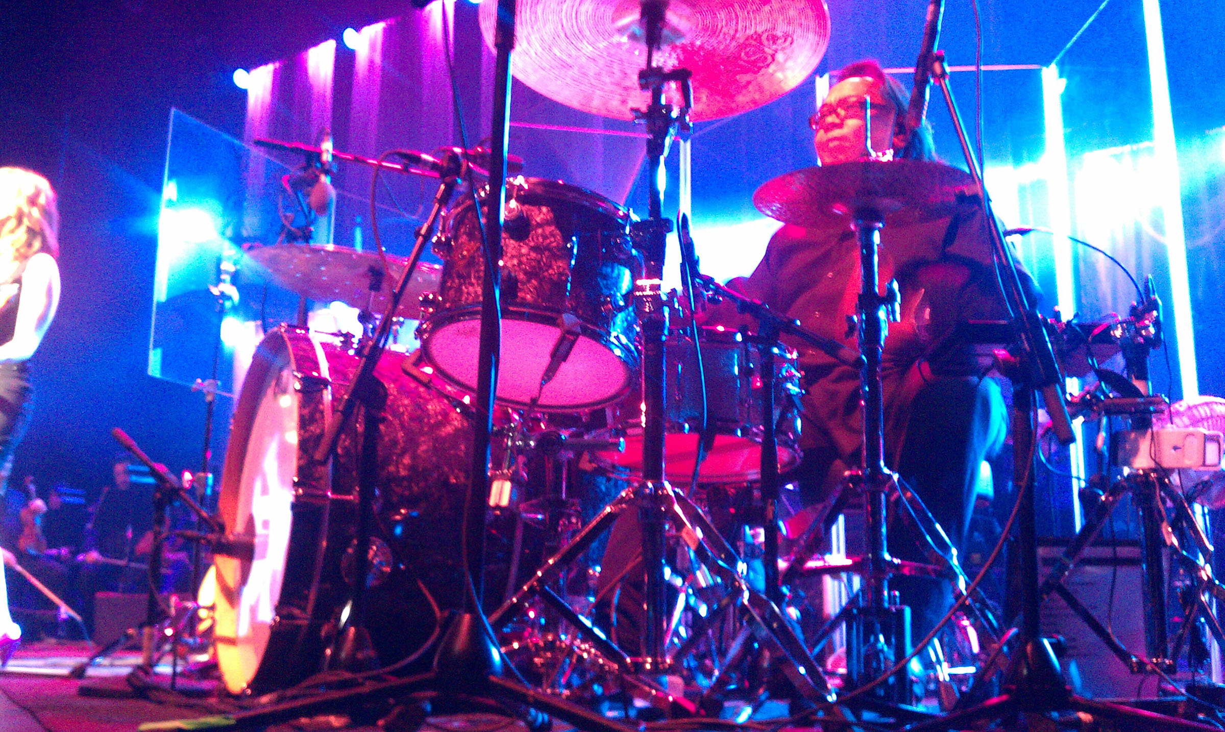 STOW, OH, August 2, 2012 — At a recent performance with Sarah McLachlan at Nashville’s Schermerhorn Symphony Center, acclaimed drummer Curt Bisquera (Josh Groban, Mick Jagger, Seal, Elton John, The Beach Boys) employed a wide arsenal of microphones from Audio-Technica. Bisquera used the AE2500 Dual-element Cardioid Instrument Microphone on kick drum; AE3000 Cardioid Condenser Instrument Microphones on toms; ATM650 Hypercardioid Dynamic Instrument Microphones on top and bottom of snare; AT4050 Multi-pattern Condenser Microphone for overheads; and AE5100 Cardioid Condenser Instrument Microphone for ride cymbal and hi-hat. Photo by Chris Heuer. |