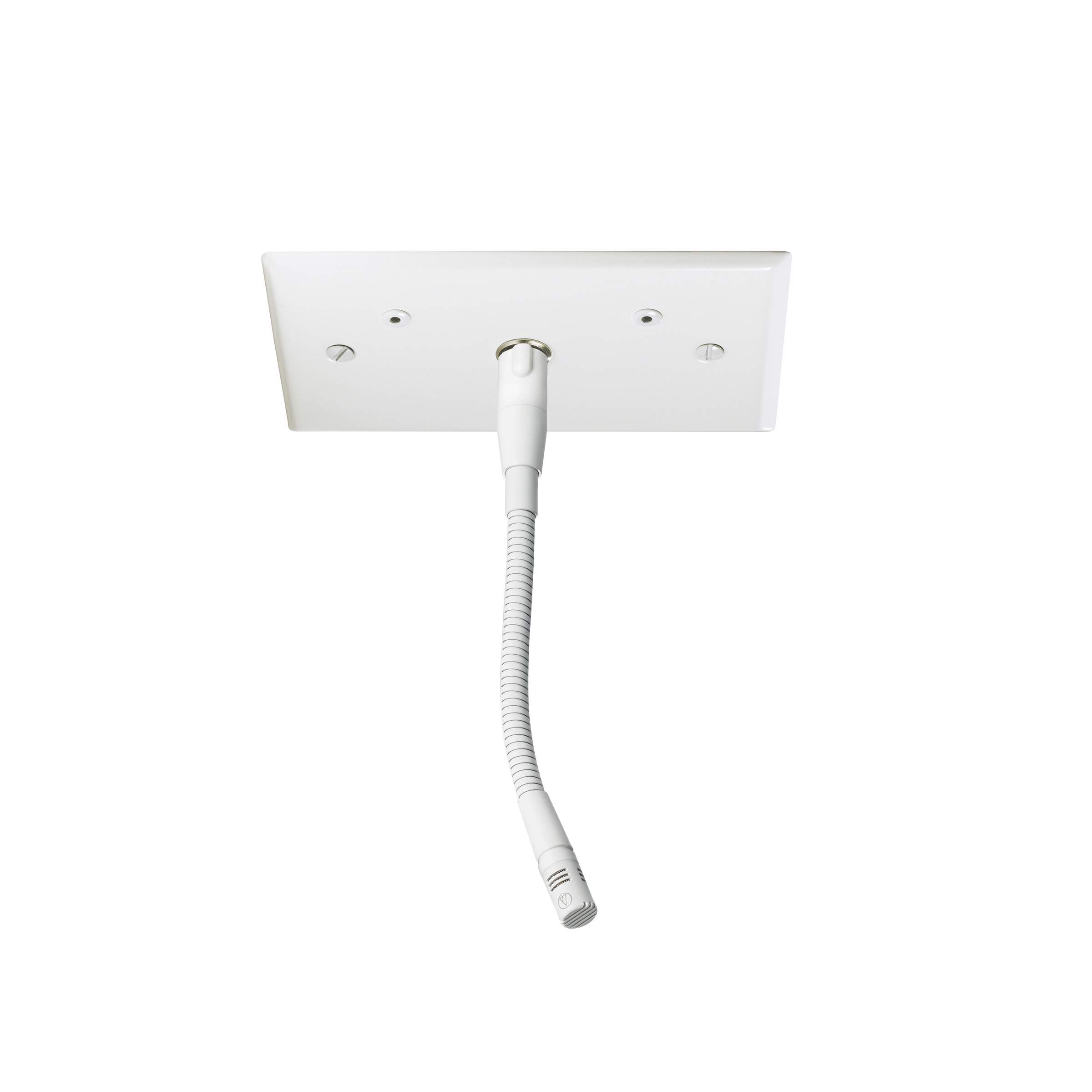 Broadly, there are three classifications under the ES931 umbrella: the ES931PM gooseneck microphone with standard AT8534 wall/ceiling plate power module; ATND931 Dante™ model with ATND8734 Dante wall/ceiling plate power module; and ES931/MIC basic model (microphone only). Each of these iterations is available in one of three distinct polar patterns (cardioid, hypercardioid and MicroLine®), with two color options (black and white), for a total of 18 different product models. The AT8534 wall/ceiling plate power module allows the ES931PM to be installed in a standard, single-gang electrical box. The ATND8734 wall/ceiling plate power module with Dante network output permits installation of the ATND931 in a standard, 2-gang electrical box with direct connection to the Ethernet network via a CAT5e or better PoE cable. Intended for boardrooms, educational and government settings, teleconferencing, houses of worship and other installed applications, each ES931 iteration provides consistent sound quality in multi-microphone installations with other Audio-Technica ES microphones.