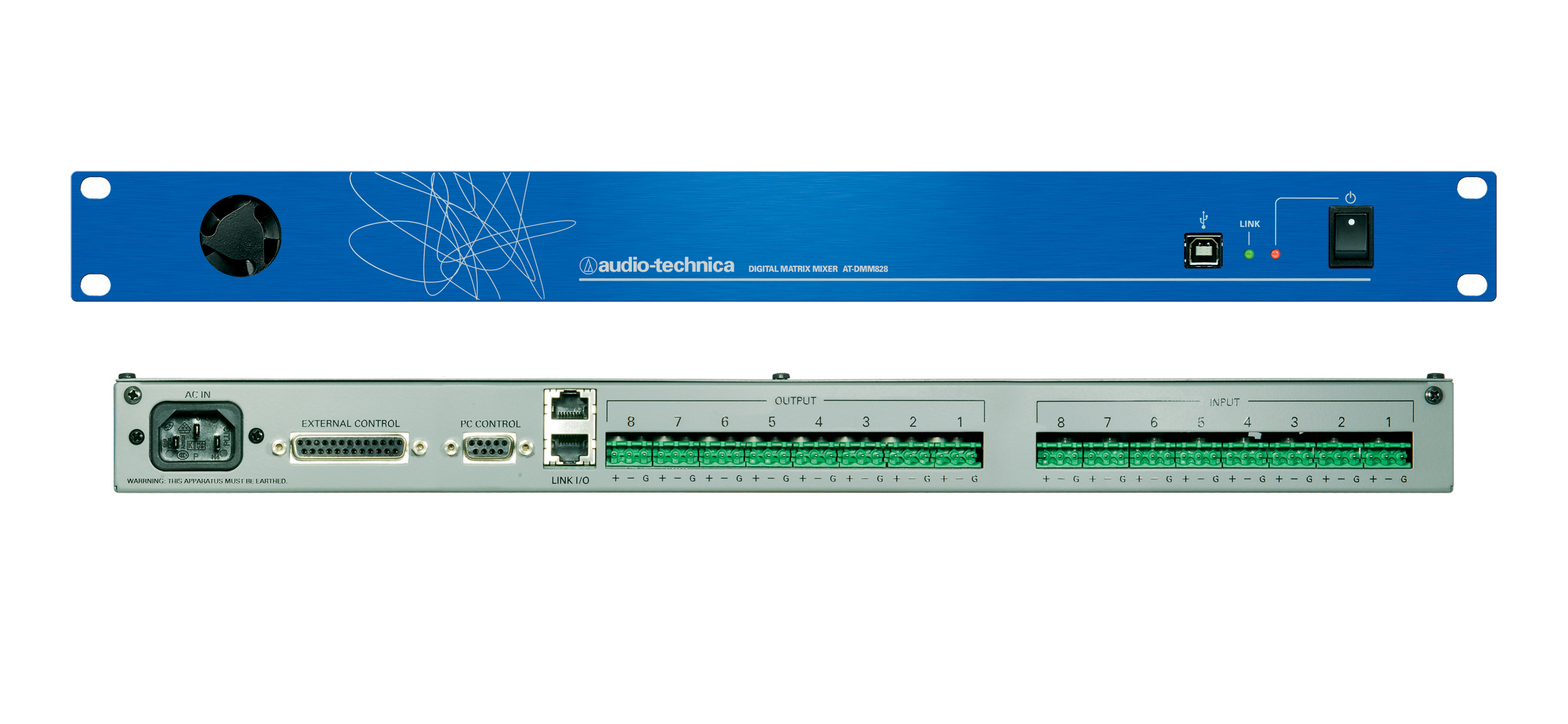 INFOCOMM, ORLANDO, FL, June 12, 2013 — Audio-Technica (booth 831), a leading innovator in transducer technology for over 50 years, is debuting its AT-DMM828 Digital Matrix Mixer, the next generation of the company’s SmartMixer® family of automatic mixers. The AT-DMM828 is a microprocessor-controlled, programmable, automatic-switching eight-channel matrix mixer. Designed for a variety of applications, including installed sound/sound reinforcement, houses of worship, broadcast, recording and more, the AT-DMM828 is designed to improve audio quality through a number of sophisticated methods. One way it achieves this is by keeping the number of open microphones to a minimum, thus reducing background noise, feedback and other distractions, and increasing clarity and audio quality, while providing instant, completely transparent switching between channels. Additionally, the mixer features “correlation,” which analyzes and interprets redundancy of source material between channels in real time and may in turn favor the dominant channel, simplifying the layout/output and reducing feedback, phase issues etc.