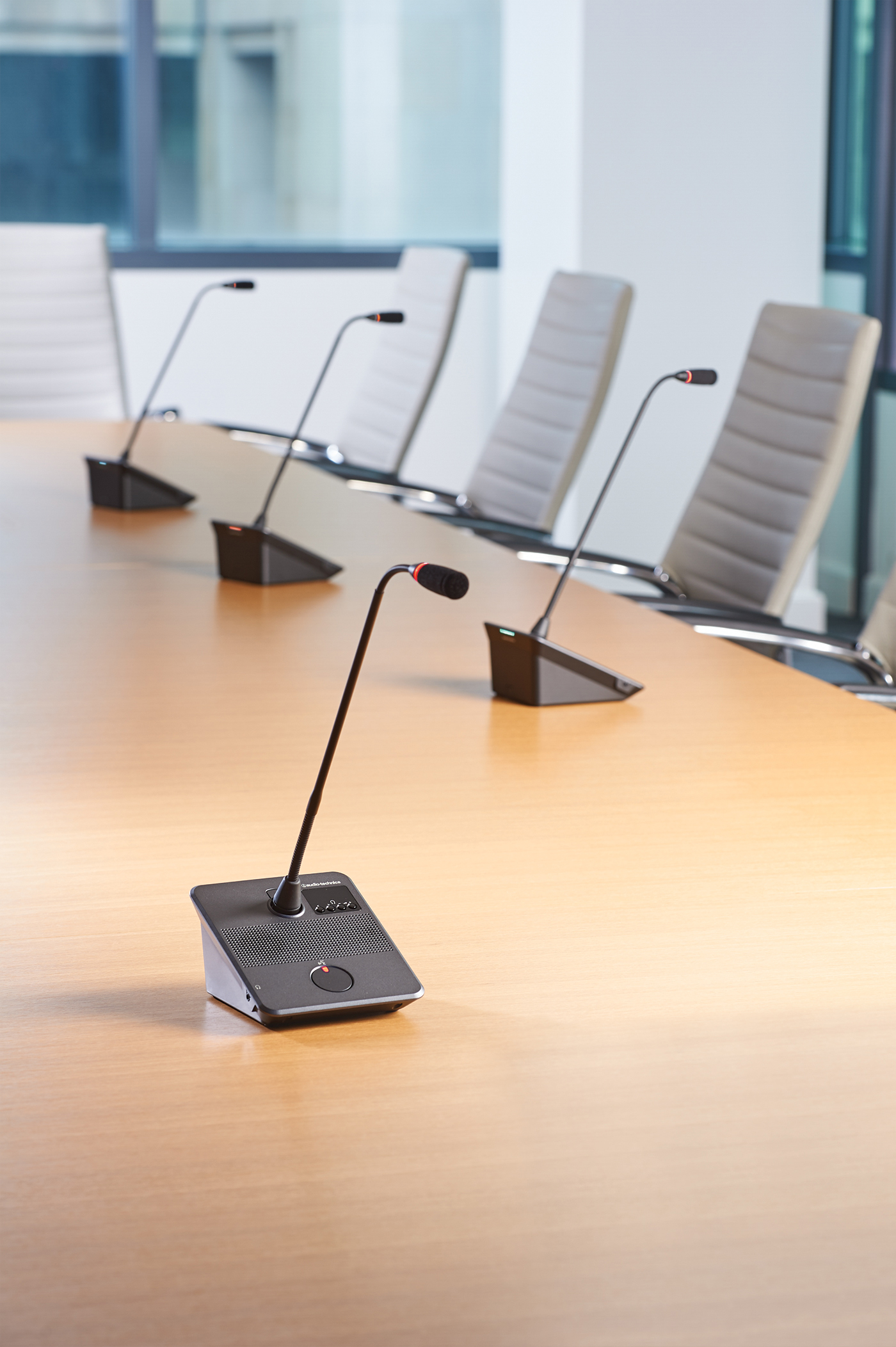 The ATUC-50 system is designed for intuitive operation and plug-and-play functionality. The system provides 24-bit/48 kHz uncompressed digital audio for clear and intelligible communication that significantly increases meeting efficiency and effectiveness. While available at a cost-effective price point, the system offers superb power and flexibility, including multi-mode operation, 12-band feedback suppressor, ability to record a meeting directly to a mass storage device on the front of the control unit and interpretation channels. A choice of two gooseneck lengths is available: the ATUC-M43H 17" (430 mm) and ATUC-M58H 23" (580 mm) microphones, allowing for added flexibility in terms of positioning.