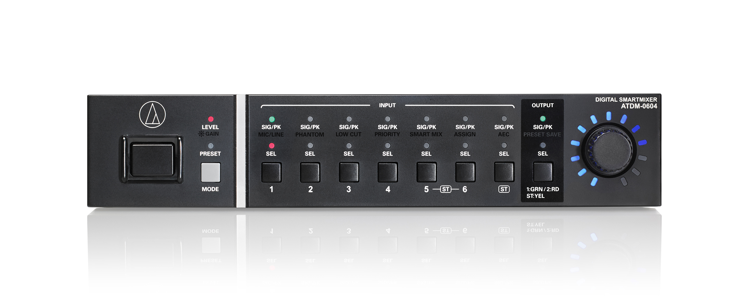 La tecnología SmartMixer de Audio-Technica permite la mezcla automática de canales en modo de puerta (gate) o para compartir la ganancia, para garantizar una salida de audio homogéneo y de alta calidad desde todas las entradas en una configuración, sin introducir retroalimentación, ruido ambiente excesivo o filtros comb. Los controles e indicadores luminosos del panel frontal del mezclador permiten a los usuarios ajustar fácilmente los niveles de entrada/salida y ganancia, configurar y reutilizar preselecciones, activación/desactivación de la alimentación phantom, filtro de corte de graves, mezcla automática y cancelación de eco acústico (AEC), cambio de configuración IP (automática o estática), y mucho más. Cuenta con una completa serie de funciones de procesamiento de la señal digital para entradas y salidas, incluido un ecualizador, un compresor, un limitador y control de la retroalimentación. Las herramientas de control y monitorización están disponibles localmente en el panel frontal o a través de la interfaz web remota (Web Remote), que permite a los usuarios gestionar los ajustes mencionados desde un PC Windows, un Mac, o un dispositivo iOS o Android, además de realizar otros cambios a los ajustes de entrada y salida, seleccionar el modo de puerta (gate) o para compartir ganancia cuando se utilice la función Smart Mix, y ajustar otros valores avanzados de configuración.