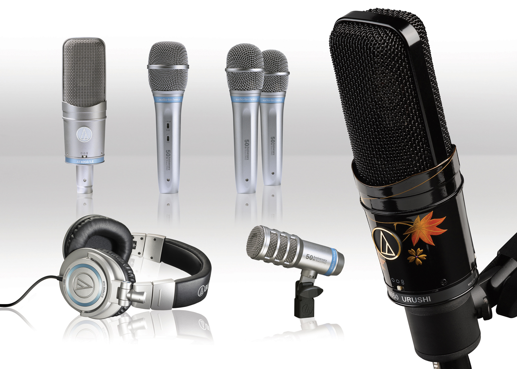 Additionally, A-T is introducing a number of limited edition products, all featuring a distinct Audio-Technica 50th Anniversary design and color scheme. The products include ATH-M50s/LE Professional Studio Monitor Headphones, ATM25/LE Hypercardioid Dynamic Instrument Microphone, AE4100/LE Cardioid Dynamic Handheld Microphone, AE5400/LE Cardioid Condenser Handheld Microphone, AE6100/LE Hypercardioid Dynamic Handheld Microphone, AT4050/LE Multi-pattern Studio Condenser Microphone and AT4050URUSHI Multi-pattern Studio Condenser Microphone with urushi lacquer finish and hand-painted Japanese maple leaves. These products are limited-edition versions of Audio-Technica’s ATH-M50s, AE4100, AE5400, AE6100, AT4050 and the legacy product ATM25.