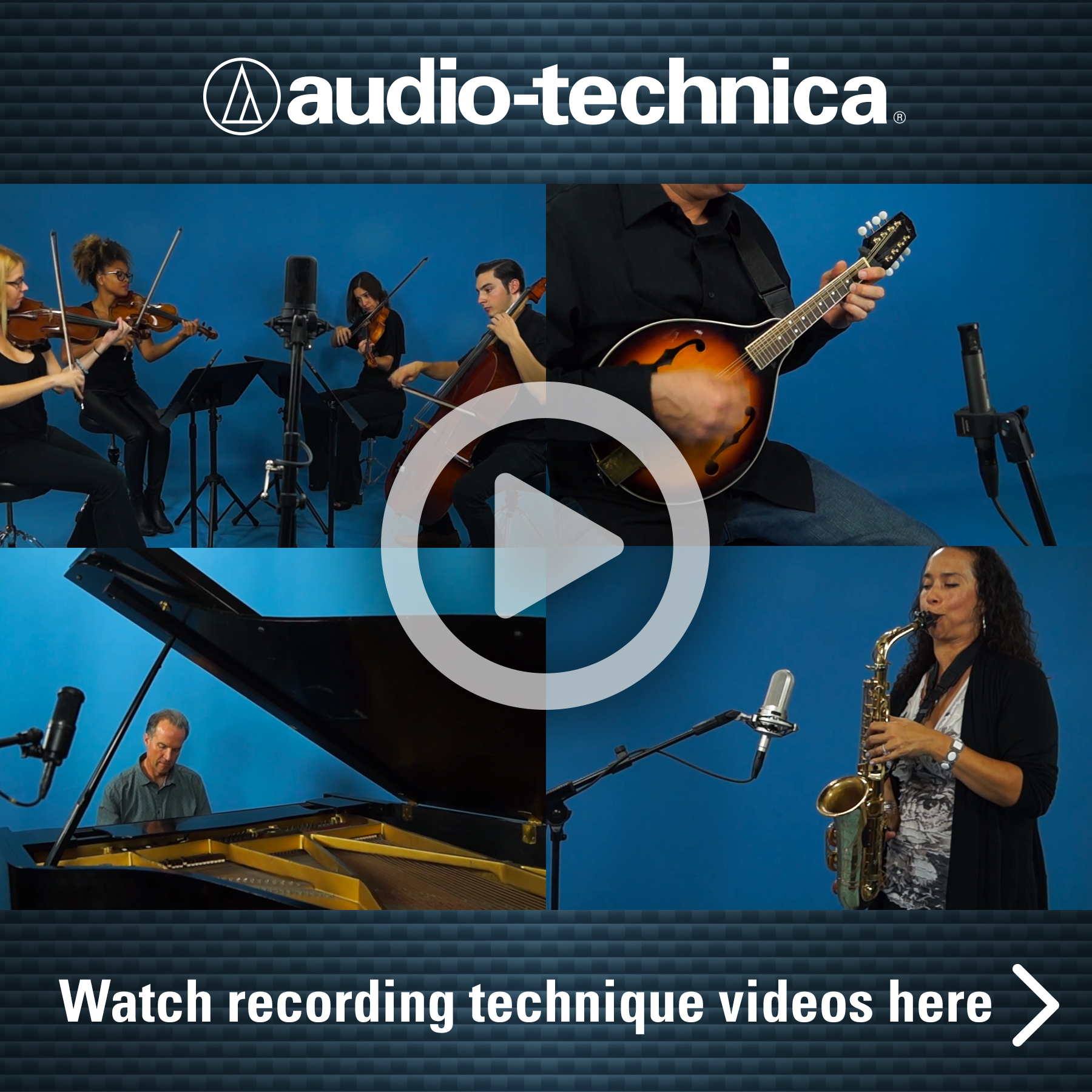 STOW, OH, May 22, 2015 — Audio-Technica, a leading innovator in transducer technology for over 50 years, has posted the latest videos in its series exploring different aspects of mic technique, mic placement and more. Utilizing some of Audio-Technica’s most acclaimed and popular products – including 40 Series, Artist Elite®, 20 Series and others – these videos illustrate various tips and tricks for capturing audio in real-world applications. Specifically, the new installment of 10 videos focuses on microphone recording basics for various instruments including banjo, brass instruments, dobro, mandolin, organ, piano, saxophone, small ensembles, stereo techniques, strings and woodwinds. Earlier videos have focused on recording basics (10 videos, including vocals, guitar and percussion) and drum miking techniques (10 videos).