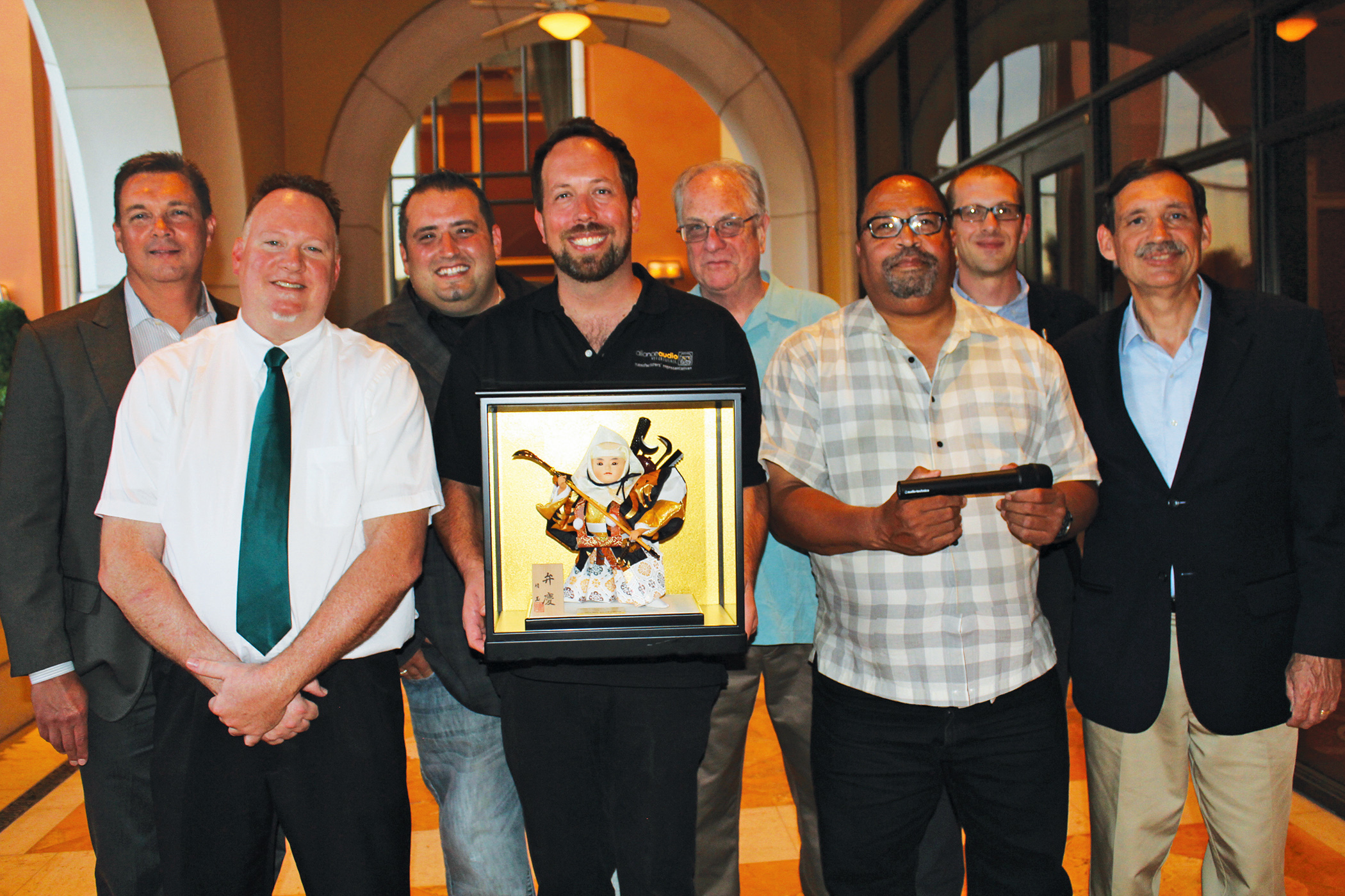 Audio-Technica held the awards ceremony to honor its dedicated force of manufacturer’s representatives during the InfoComm Expo on June 18, 2014, in Las Vegas, Nevada. The A-T Rep of the Year recipient was congratulated for outstanding sales performance and bestowed with Audio-Technica’s beloved Samurai doll award. Alliance Audio Visual Group was acknowledged for its consistent success in the areas of sales, marketing and customer service.