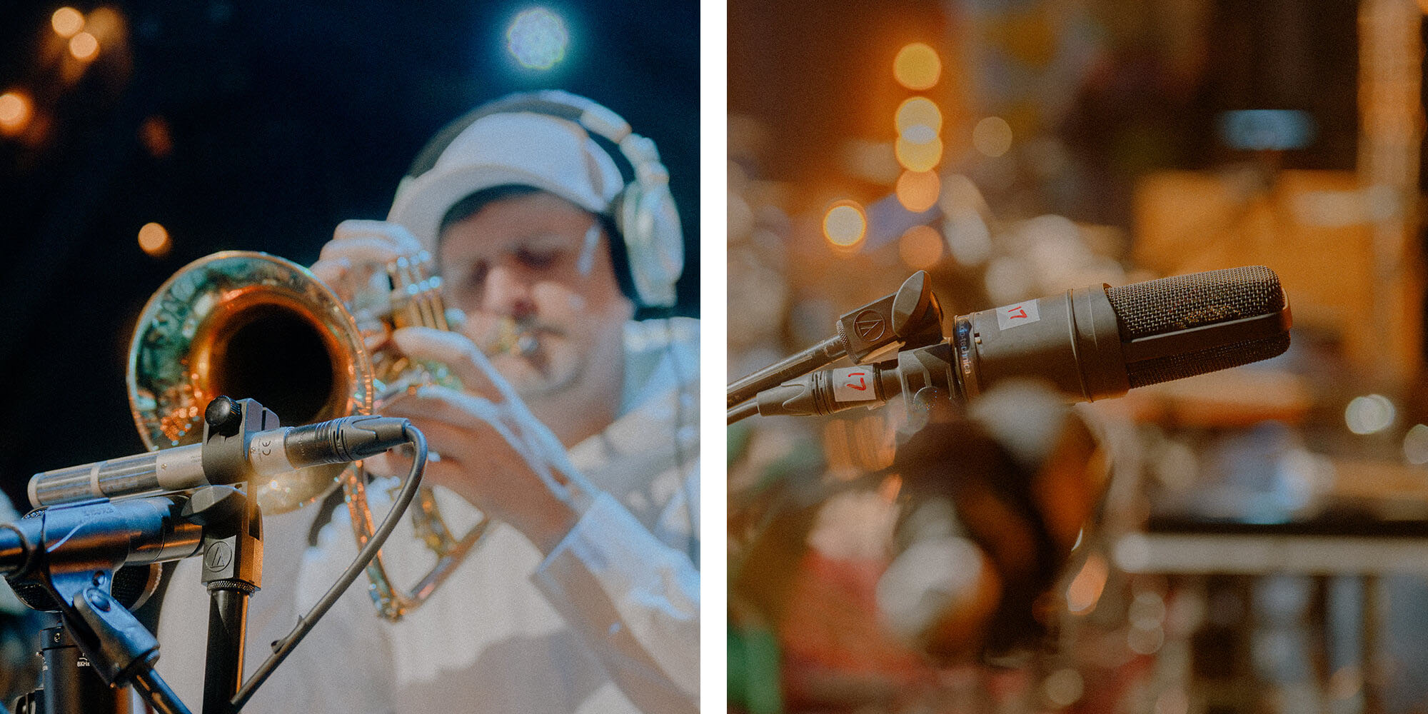The newly introduced Audio-Technica ATM355VF was used on violinist Zach Brock, capturing his acoustic tone alongside a direct signal from his pedalboard. “The acoustic mic added a beautiful detail that the DI alone couldn’t provide,” Hard explains. Ricks adds, “Snarky Puppy has trusted A-T mics for every album project they’ve recorded over the last 18 years, from their earliest tours to Sylva in 2014, and now Somni. Our products have been part of their journey every step of the way.”