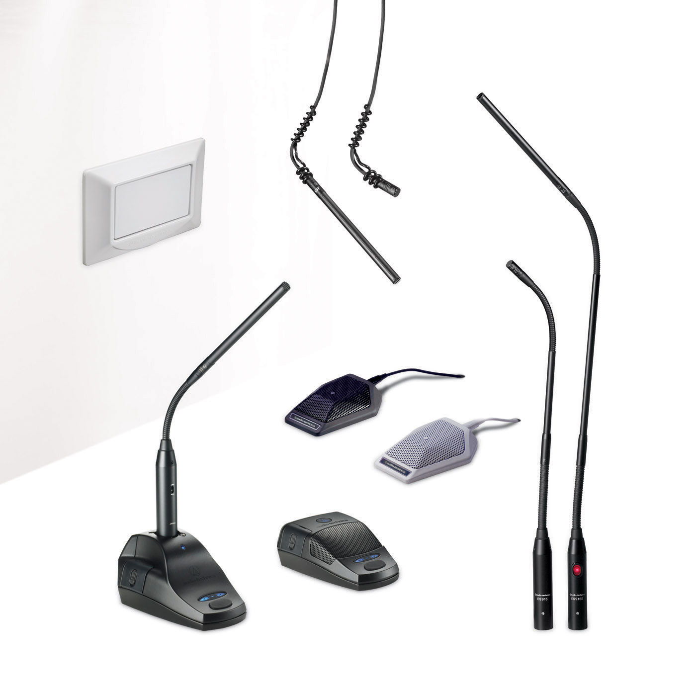 hanging, boundary, lavalier and handheld microphones.