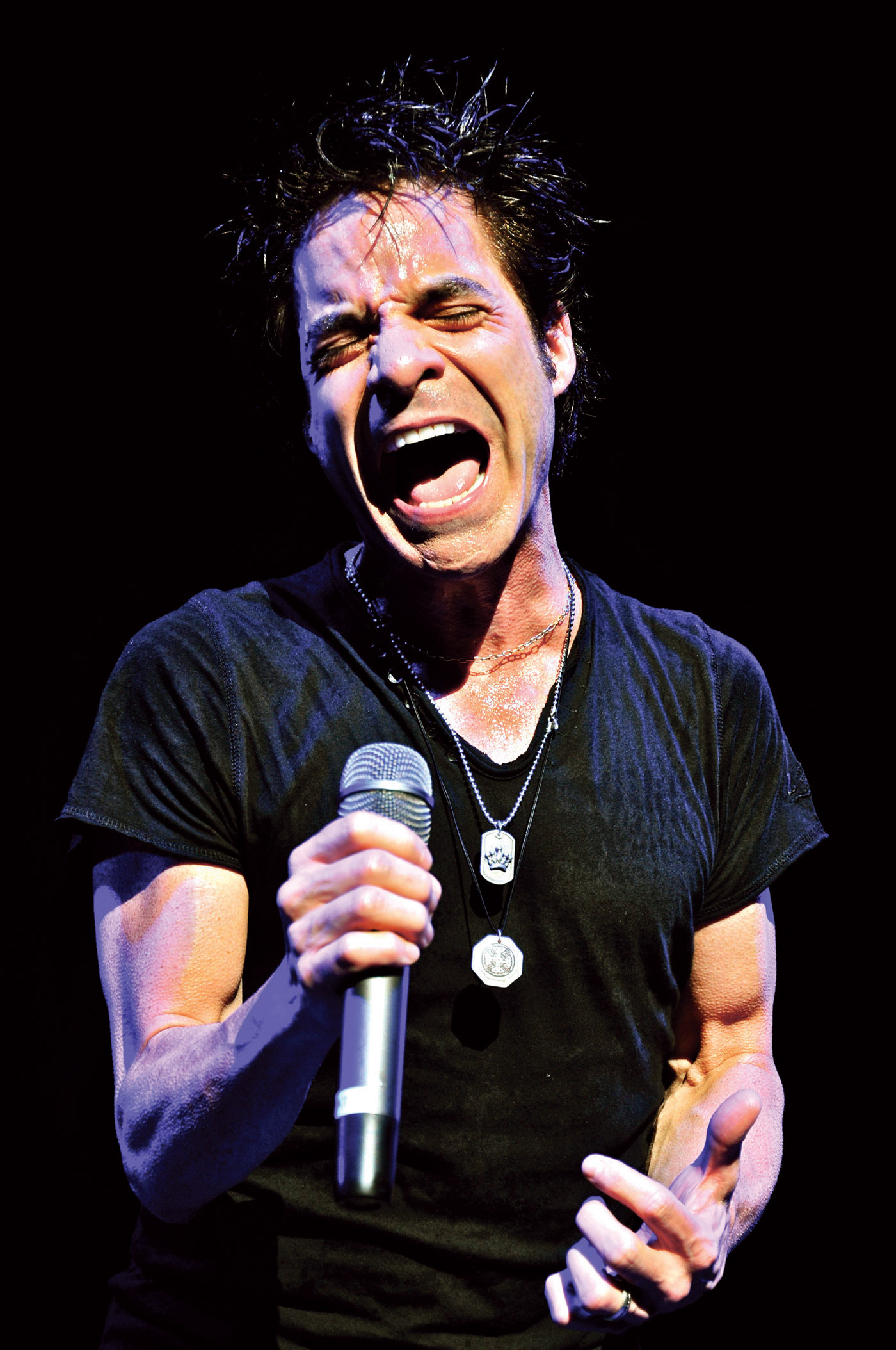 Monitor Engineer Rob Greene added, “The dual-element ATM250DE – whose dynamic and condenser elements we split into two channels on the console and blend or ride separately – just sounds great on guitar, and there are never any phasing problems. And the 5000 Series wireless with AEW-T5400 mic/transmitter vocal mic setup is great with the wedges – I can get a really high SPL and a full sound without feedback and I think it sounds better than wired.” |