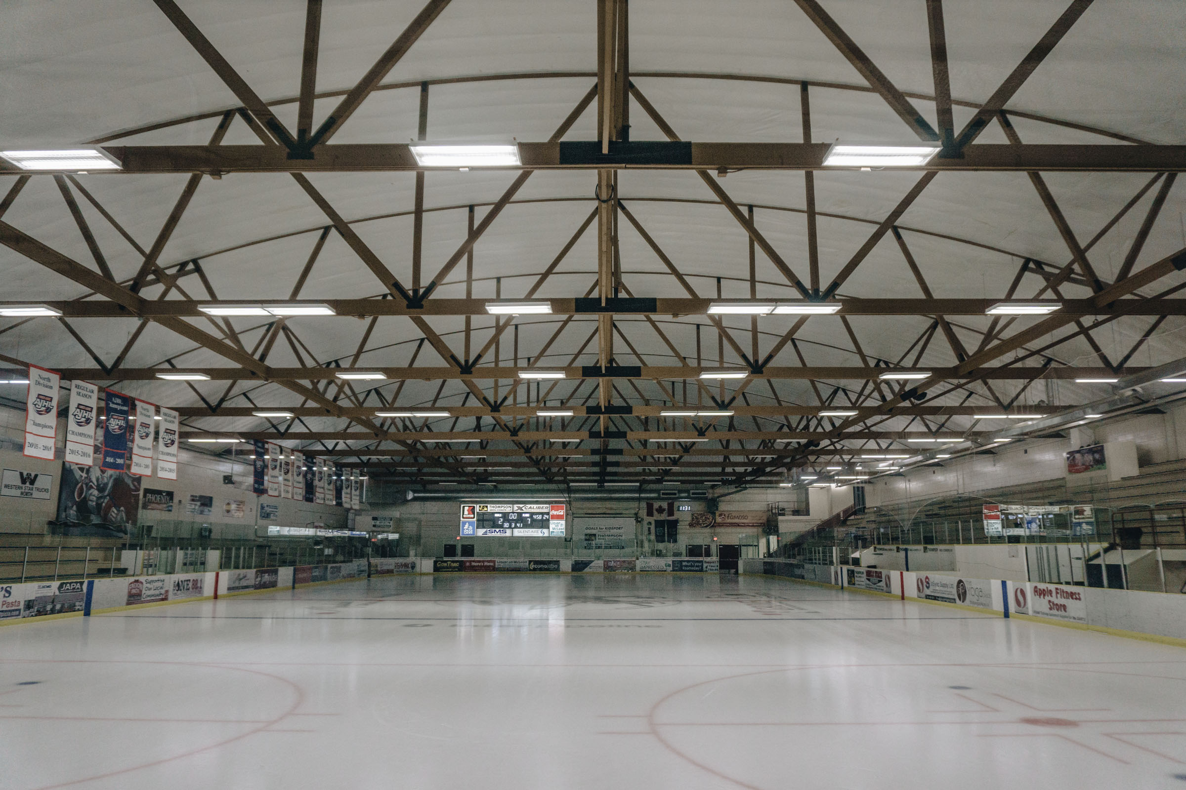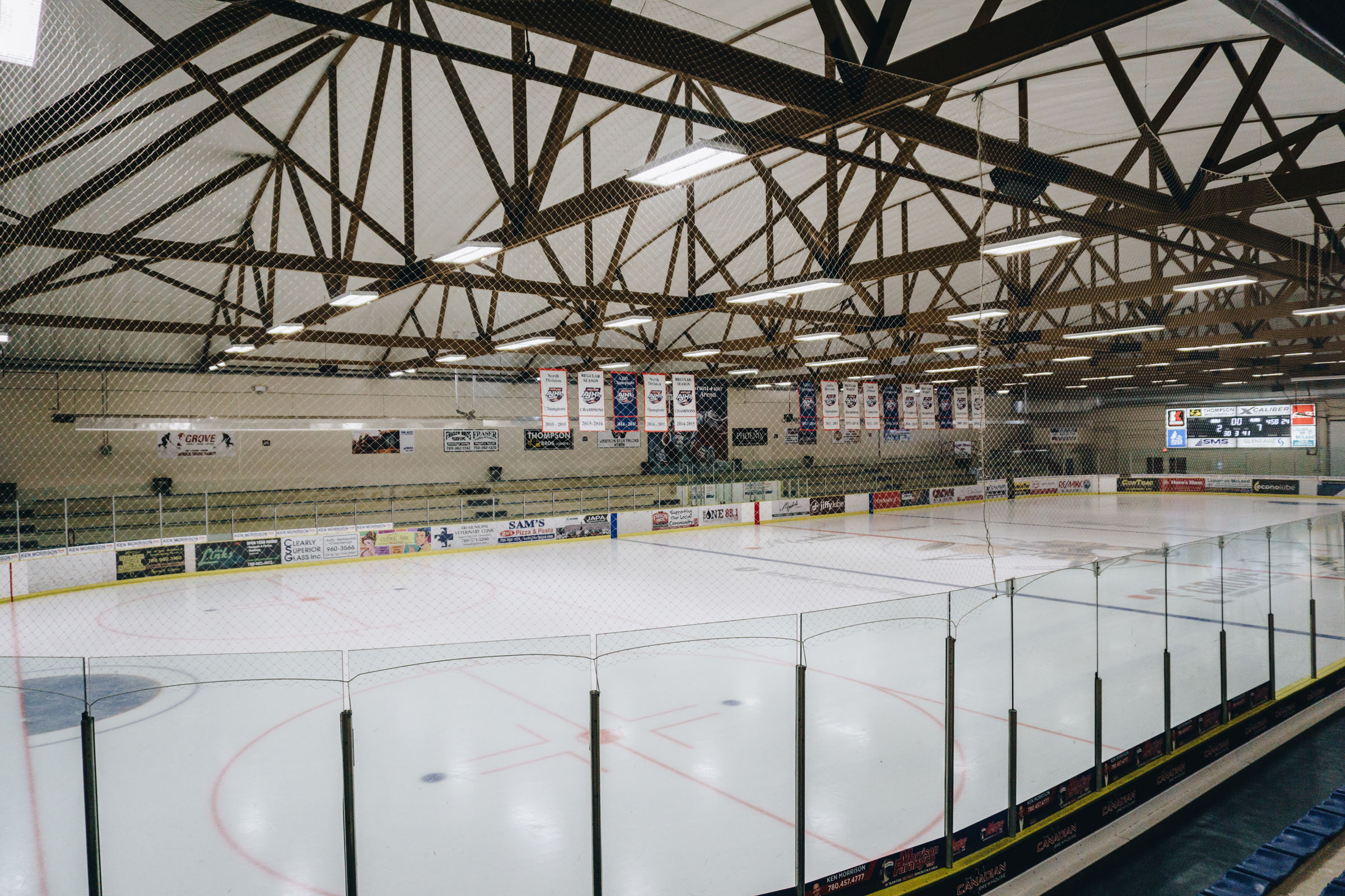 Over six days, the integrator removed the old components and installed the new Bose systems. In the Grant Fuhr Arena, the larger of the two venues, the sound system consists of four Bose Professional RoomMatch Utility RMU208 loudspeakers for coverage of the rink area and eight Bose RMU206 speakers for coverage of the main seating areas, with eight Bose FreeSpace® DS100F pendant loudspeakers to cover the south end of the seating area. The RoomMatch Utility loudspeakers are amplified through a Bose PowerMatch® PM8500N networked amplifier; and a Bose FreeSpace ZA 2120-HZ zone amplifier is used for the Bose DS100F pendant loudspeakers. A Bose Professional ControlSpace® ESP-00 Series II modular processor, with 12 input channels and eight output channels, manages the system.