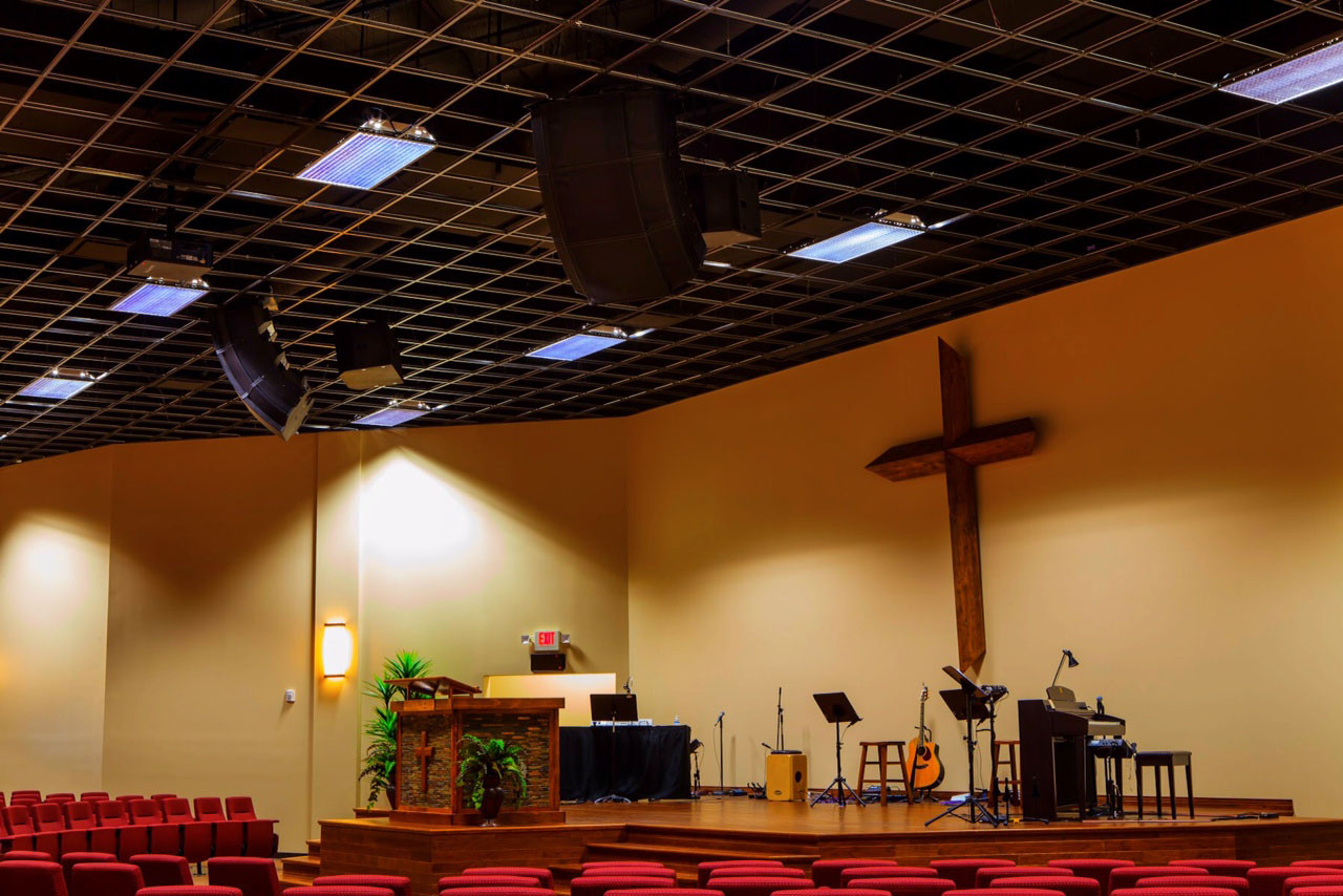 “The six compression drivers in each cabinet from two arrays provided all the directivity we needed to tailor the sound coverage to all of the seats in the worship hall, and we were able to do that without further exciting this challenging acoustical environment with more cabinets yielding higher SPL’s,” observes Joe Smart, the Sales Manager for Covenant Communications and the system’s designer. Noting the concrete flooring, the copious amounts of highly reflective solid drywall, and the fact that there was no acoustical treatment in the ceiling space, he says, “A predictable coverage pattern for the sound was absolutely critical. And that’s why the RoomMatch speakers were the perfect solution: We were able to cover the space consistently and coherently with a minimum number of boxes.”